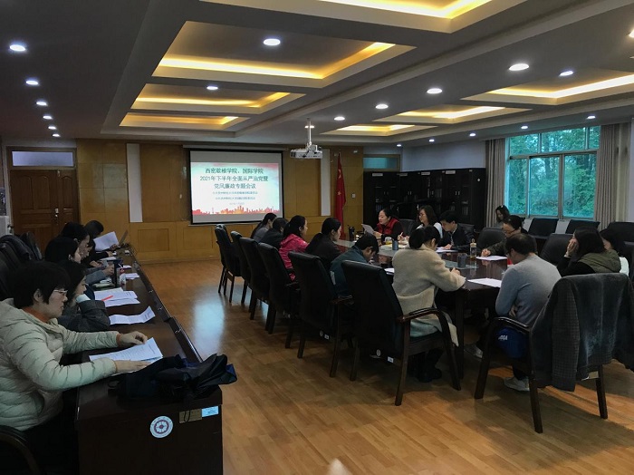 在行政楼314会议室召开了2021年下半年全面从严治党会议。学院领导班子、学院党委纪检委员、党委委员、科级专职组织员、科级干部、支部书记、支部纪检委员参加了会议,会议由国际学院党委书记王治航主持。