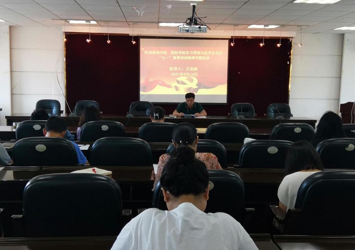 王治航从“深刻认识习近平总书记‘七一’重要讲话的历史性意义”、“深刻认识我们党创造的伟大成就,特别是党的十八大以来创造的新时代中国特色社会主义的伟大成就”、“深刻认识江山就是人民、人民就是江山,始终保持党同人民群众的血肉联系”等内容进行了深入宣讲。他指出,认真学习“七一”重要讲话精神是当前和今后一个时期重大政治任务,作为党史学习教育的核心内容,全体教职工要领悟其精神实质,把握其实践要求,从党的百年奋斗史中汲取前进的智慧和力量,不断增强“四个意识”、坚定“四个自信”、做到“两个维护”。