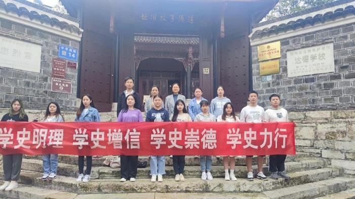 在党史学习教育基地——达德学校旧址开展了“学史力行践初心,砥砺奋进开新局”新党员入党宣誓活动。国际学院正科级专职组织员潘吉、副科级专职组织员李欣灿带领学院党委所辖学生支部七名新党员及学生党建中心七名同学参加了本次活动。