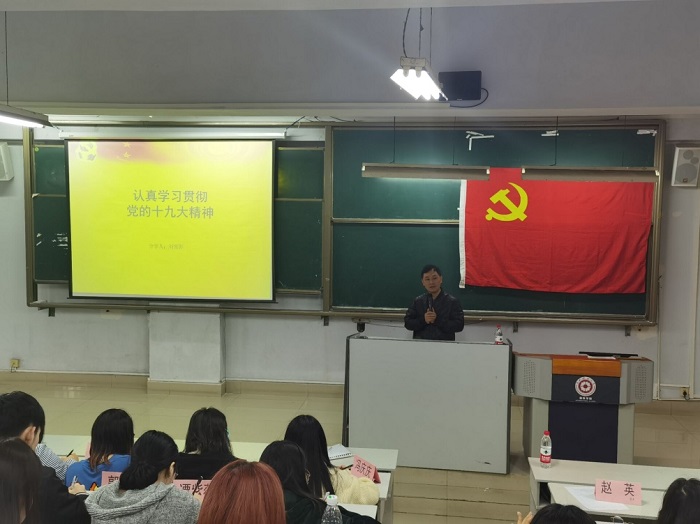 副教授刘雪影为大家上了第一堂党课《认真贯彻学习党的十九大精神》。刘雪影针对“为什么冠以习近平同志的名字?”“为什么说中国进入了新时代?”“为什么突出中国特色社会主义?”“习总书记视察江西有何深意?”这四个问题作了深入细致的解读。与此同时,他希望大家严格要求自己,自觉接受党组织和同学们的监督和帮助,坚持不懈克服自身的缺点,弥补自己的不足,积极向党组织靠拢。