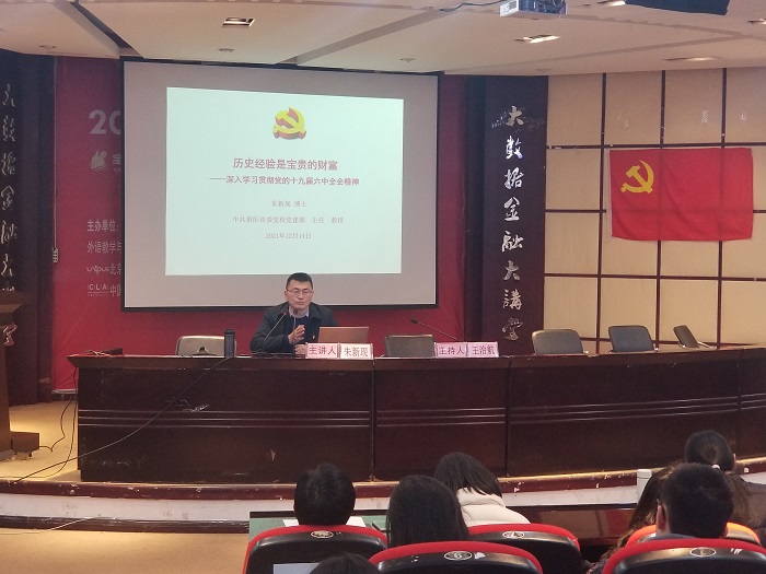 在鹿冲关校区多功能报告厅举行“历史经验是宝贵的财富——深入学习贯彻党的十九届六中全会精神”专题宣讲会,中共贵阳市党校党建部主任、教授朱新现应邀主讲,学院全体师生党员参加,无码漫画