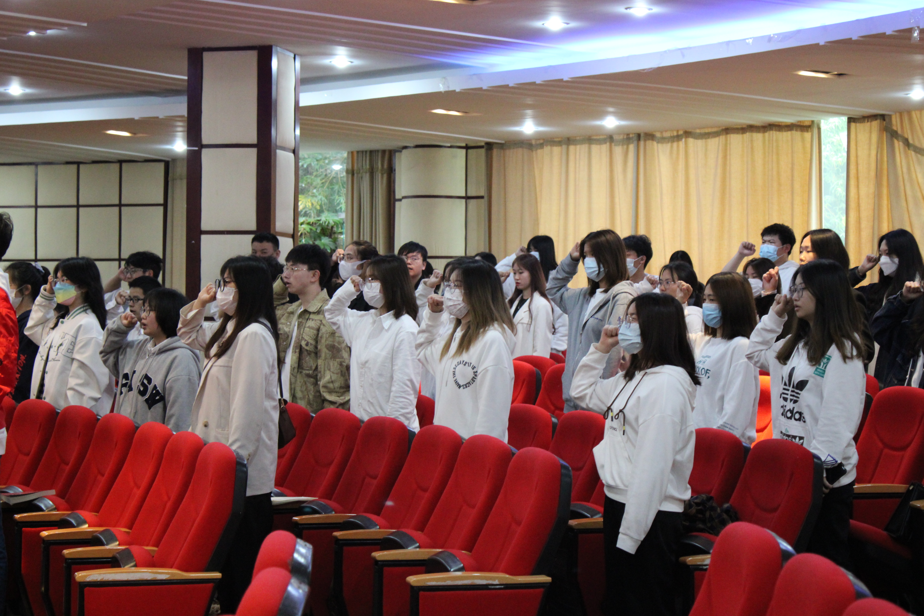 在鹿冲关校区大数据报告厅举行“喜迎二十大,永远跟党走,奋进新征程”2022年新团员入团仪式。团委指导老师颜华菲、董宇婧、李雨霏、郑君花老师出席仪式。