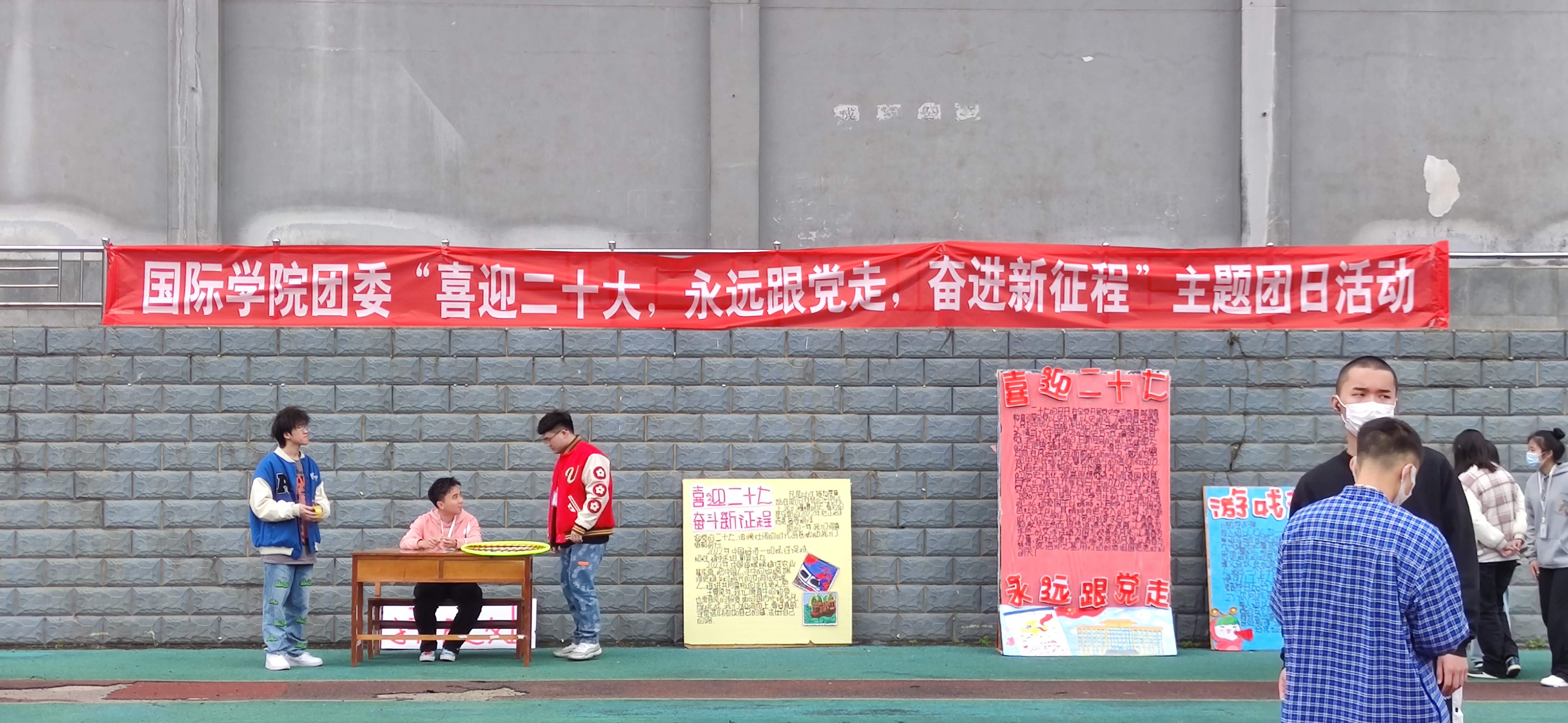 团委在鹿冲关校区足球场开展“喜迎二十大、永远跟党走、奋进新征程”主题团日活动。学院各团支部的同学积极参与。