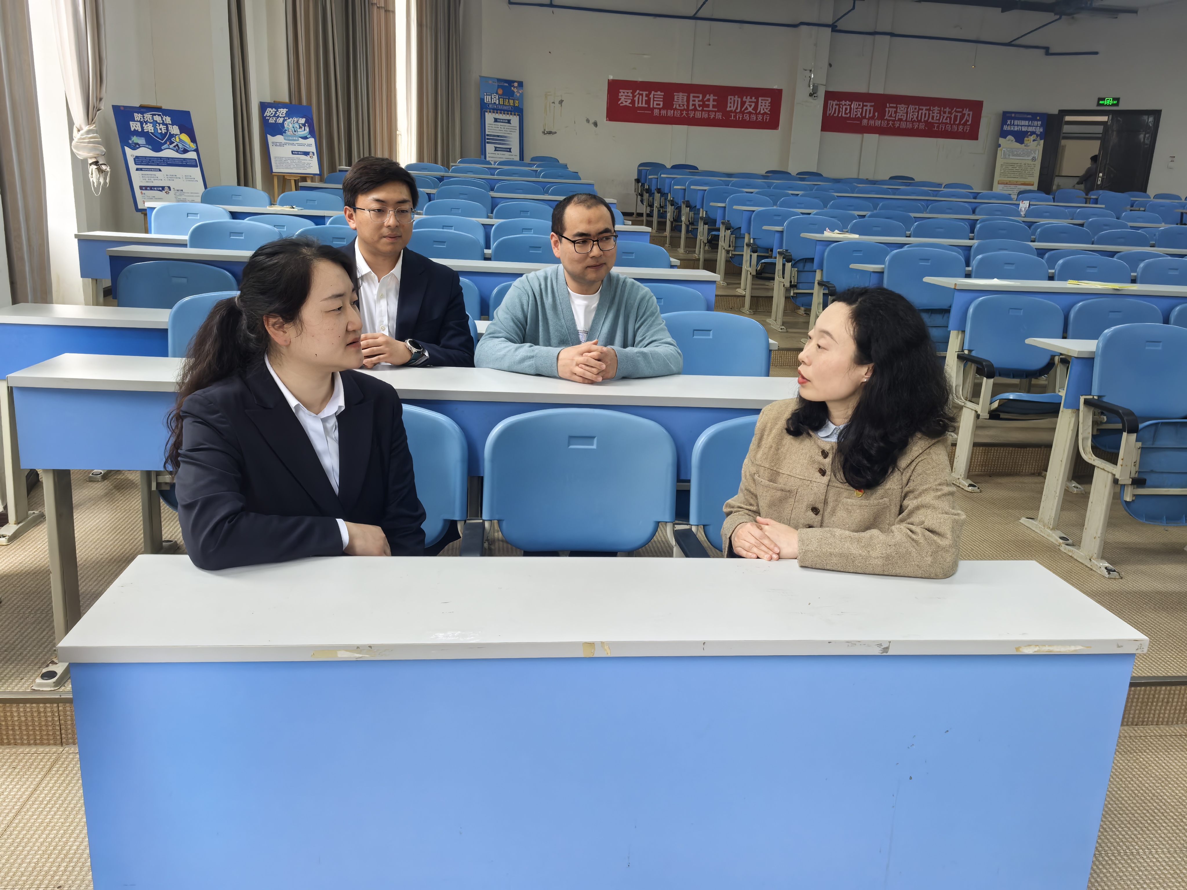 党委副书记陈嵩与中国工商银行乌当区黑马支行行长张琳进行了“访企拓岗”交流座谈,就人才培养、课程设置、实习实训、实践基地建设等方面进行了深入的探讨和交流,希望与银行等金融机构建立更加紧密的合作关系,共同推动人才培养和行业发展,进一步拓宽校企合作的广度和深度。