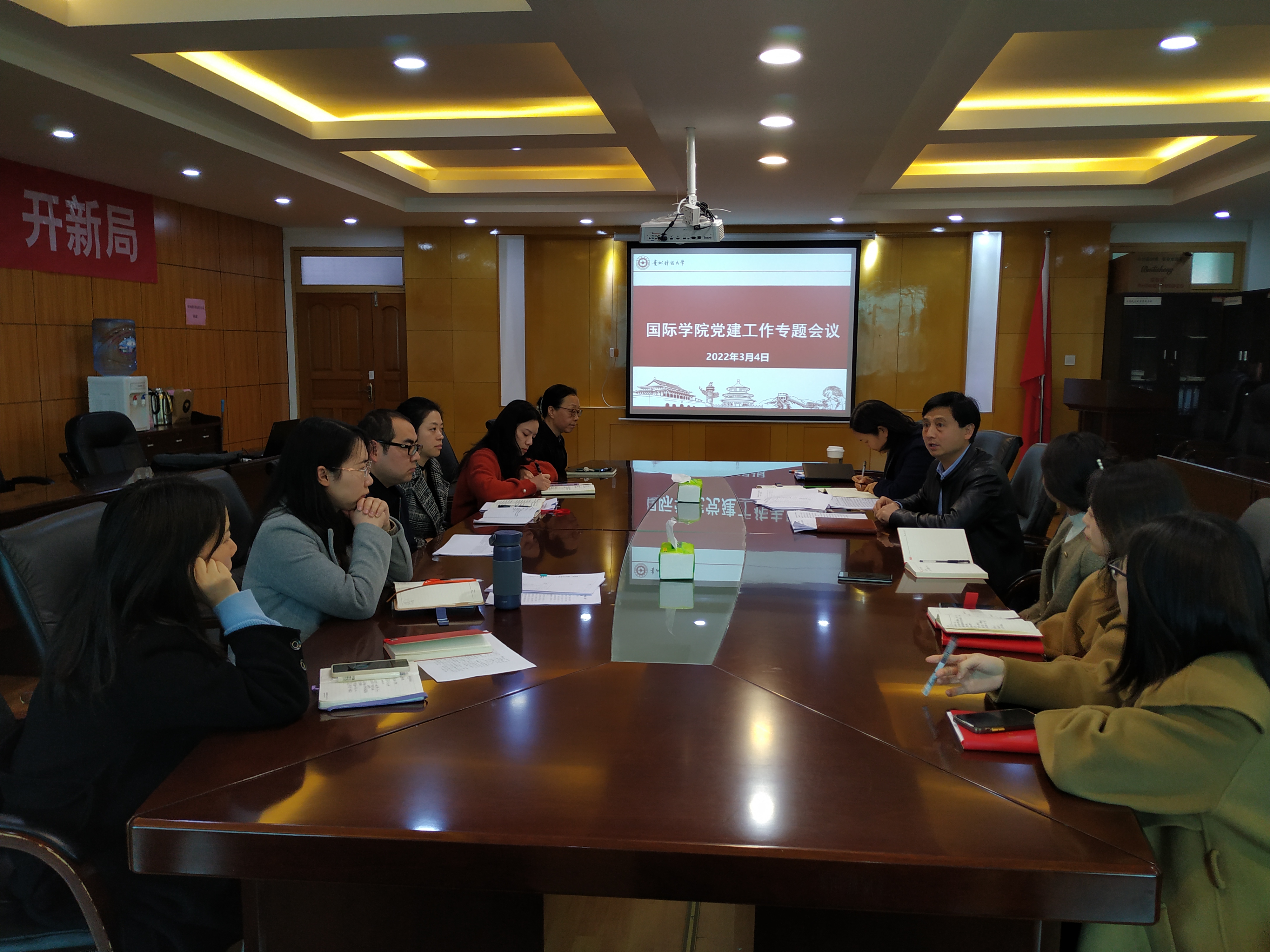 会议研究部署了本学期的党建工作并提出要求:一是要强化党务知识的学习。严格落实组织生活制度,认真组织开展“三会一课”、主题党日、组织生活会、谈心谈话,及时组织开展习近平总书记最新重要讲话精神的学习,不断增强“四个意识”、坚定“四个自信”、拥护“两个确立”、做到“两个维护”,切实提高组织生活的质量;二是要规范做好疫情防控常态化下的党员发展和加强对党员的教育管理;三是各党支部要树立党建品牌意识,开拓创新,结合国际化办学特点组织开展有特色的主题党日活动;四是持续抓好支部规范化标准化建设和“五个一批”工程创建培育工作;五是坚持党建引领,促进优良学风。围绕学风建设强化年为契机,充分发挥学生党员的先锋模范作用,助推学风建设,不断提高学习效果。