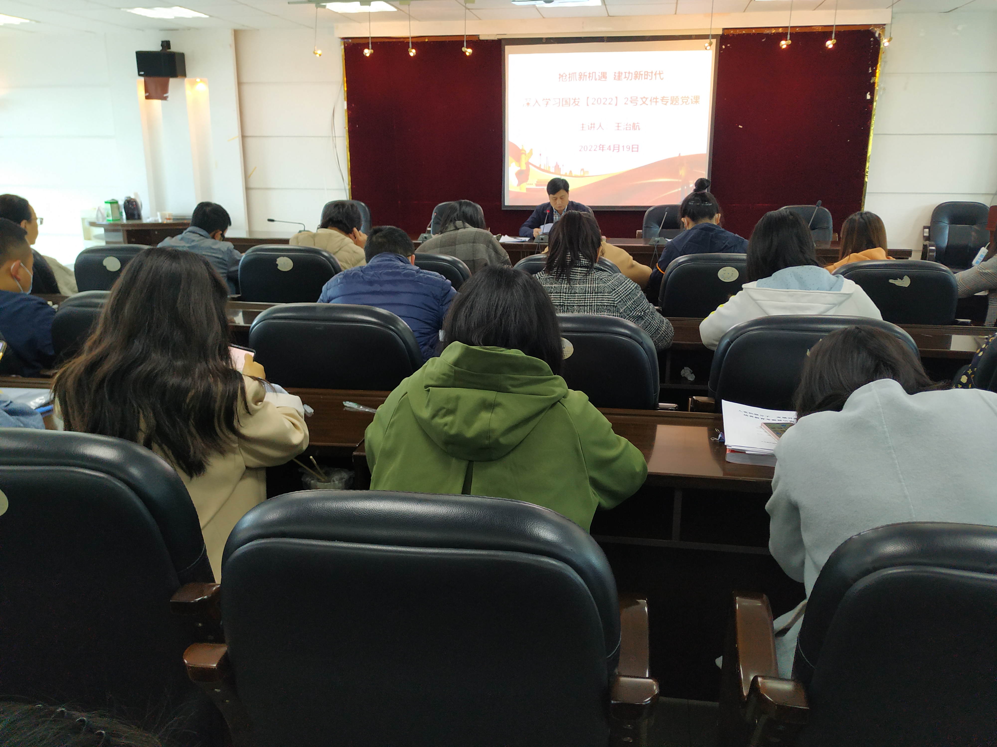 党委书记王治航在鹿冲关校区行政楼六楼会议室为学院教工党支部、所联系的学生党支部、部分学生党员以及全体教职工讲授题为“抢抓新机遇、建功新时代——深入学习新国发2号文件”专题党课。