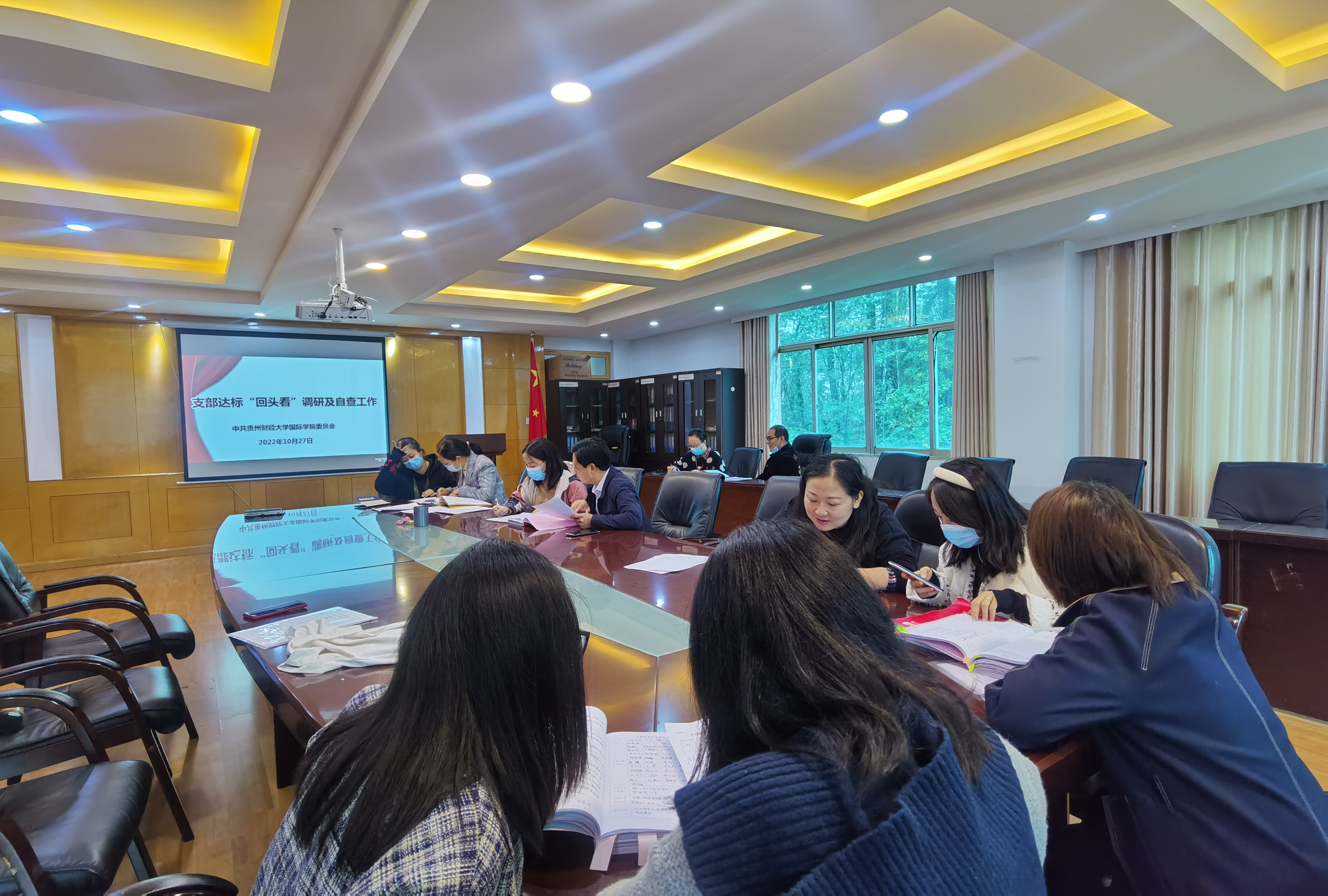 于10月27日在行政楼三楼会议室开展党务干部培训暨支部达标“回头看”调研及自查工作。学院党委书记王治航、党委副书记黄暐、肖启迪、各党支部书记支委及党办工作人员参加培训。