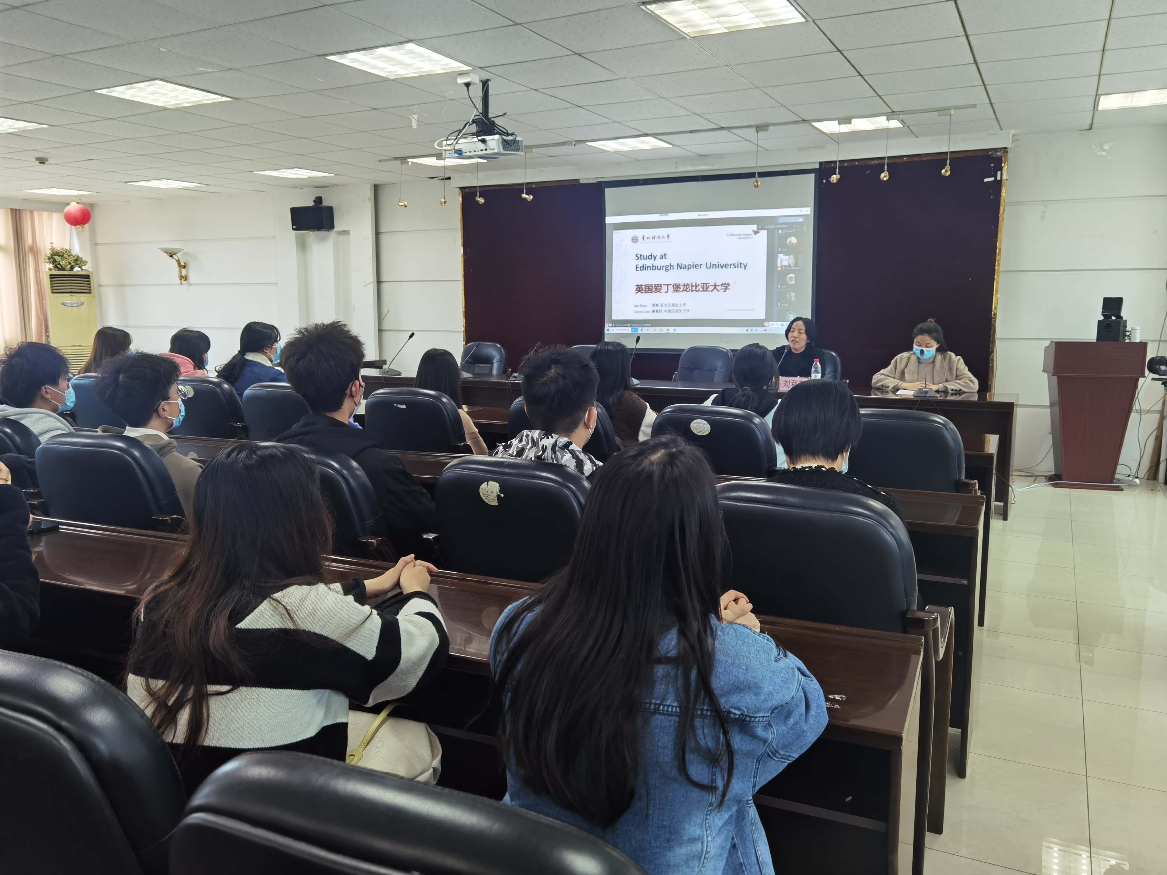副院长刘利音出席见面会并致欢迎辞,英国爱丁堡龙比亚大学亚太区国际合作招生主任周帆、龙比亚大学中国区招生主任廖嘉欣作为主讲嘉宾,辅导员老师李薇薇,2021级与2022级30名学生代表线下以及135名新生线上参加见面会,见面会由项目科老师卫荷主持。
