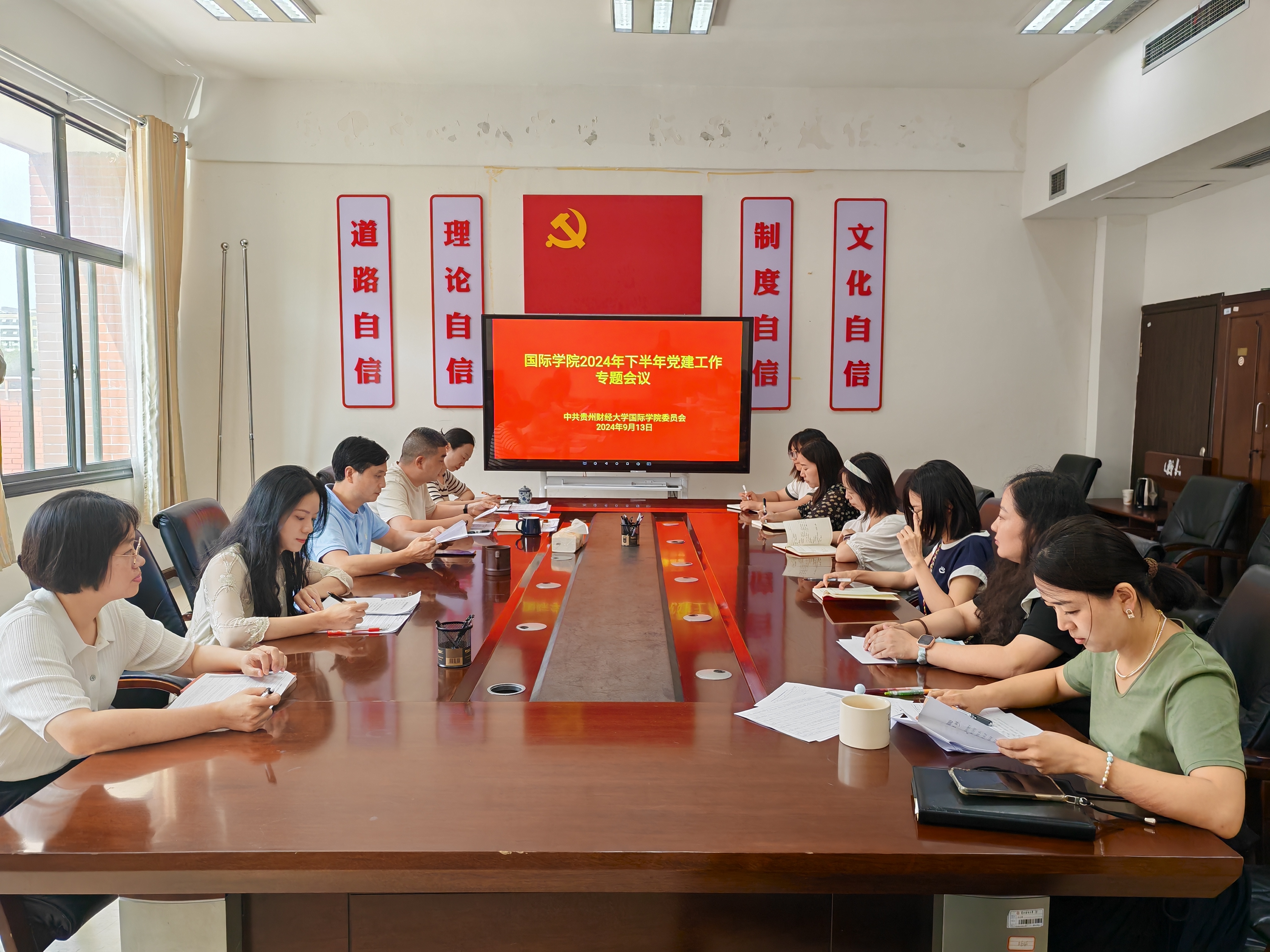 2024年的党建工作完成情况进行梳理,强调在下半年工作中,要将“第一议题”制度和其它党建活动相结合,提升党员干部的理论基础,让“第一议题”制度落实见效。要谋划好社区党支部建设与打造、持续优化基层党支部设置、及时增、补、改选好支委。切实发挥学院纪委的职责,对标2024年党建成效考核指标体系推进学院各项工作开展。