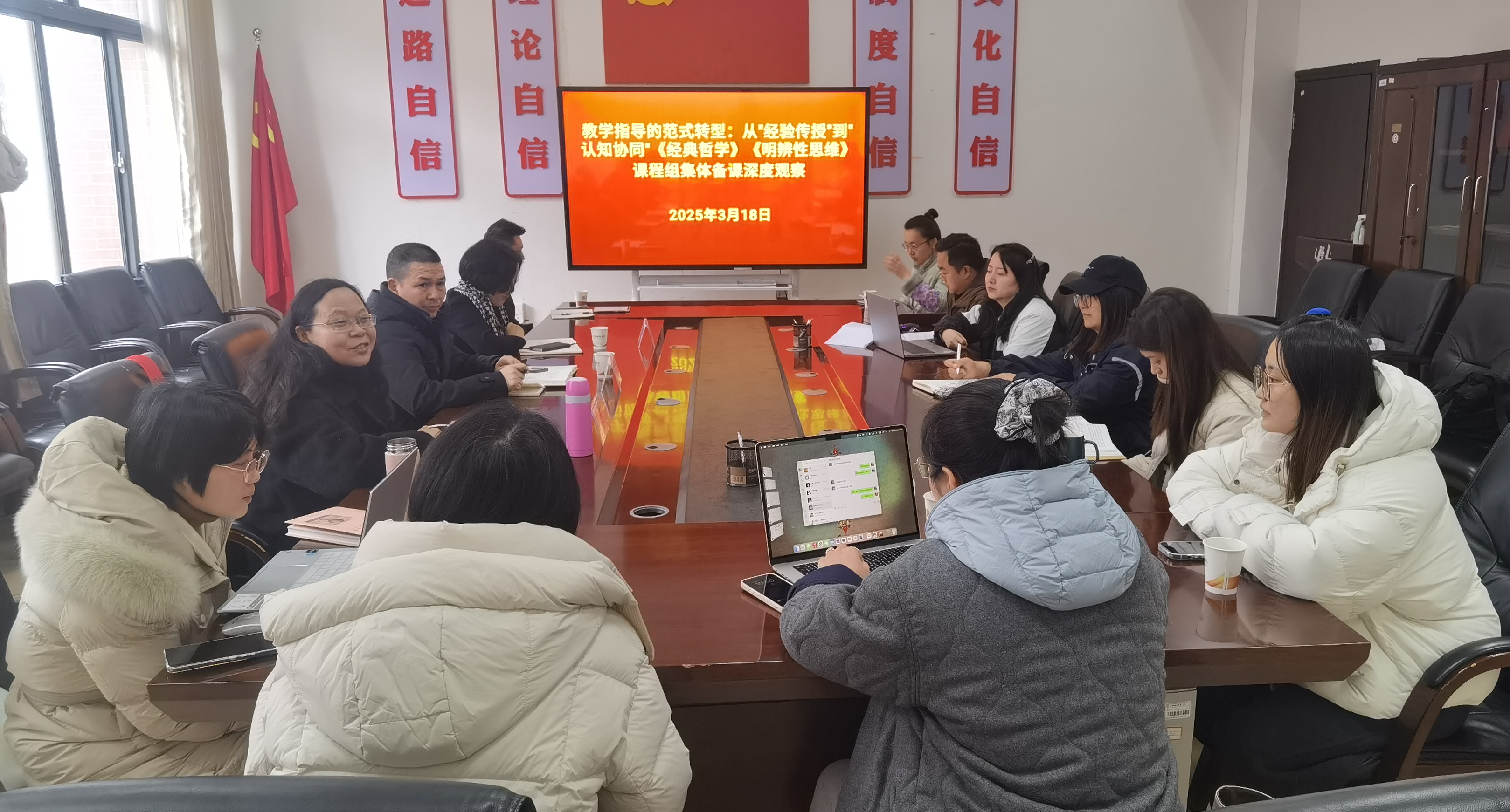 马克思主义学院老师王蓉就《明辨性思维》与《经典哲学》的课程性质、主要内容和近年来的开课情况进行了介绍。随后,王蓉对《明辨性思维》课程在“论证、预设、概念化、问题化和提问”五个工具的运用进行指导说明,并梳理和解释了《明辨性思维》与《经典哲学》课程之间的联系与区别。王蓉还结合自身的教学实践,阐述了如何提升教师在教学中的价值判断力,激发和养成学生的创造力并分享了教学示范课设计。