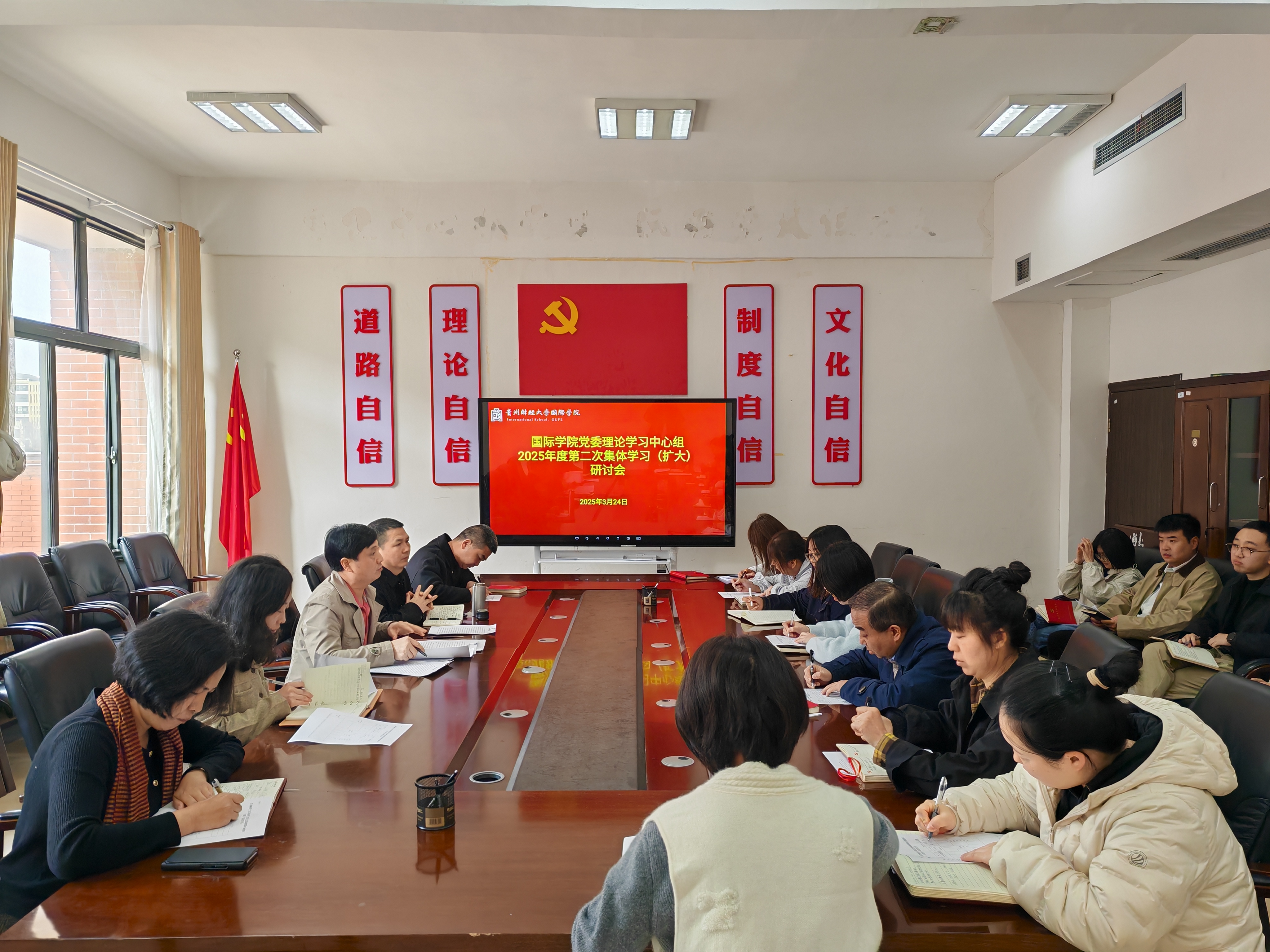 党委理论学习中心组2025年度第二次集体学习(扩大)研讨会在正德楼413会议室召开。学院党委书记王治航主持并讲话,学院领导姜友文、古鸿宇、陈嵩、刘利音出席会议。