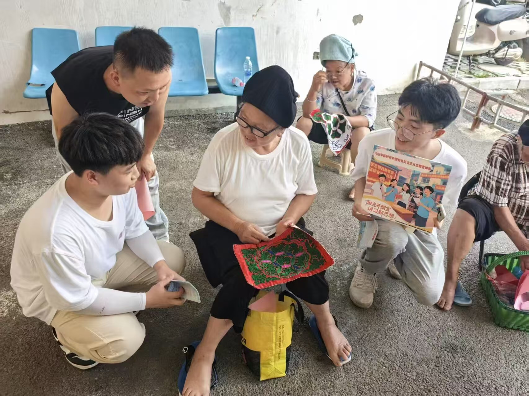 “青春作笔书乡韵,实干为墨绘振兴”实践团深入社区,开展入户调研,推进移风易俗宣传工作。他们结合中华优秀文化传承,学习苗绣技艺,并向社区群众发放宣传单,倡导“婚事新办、丧事简办”,让文化传承与文明实践相辅相成。
