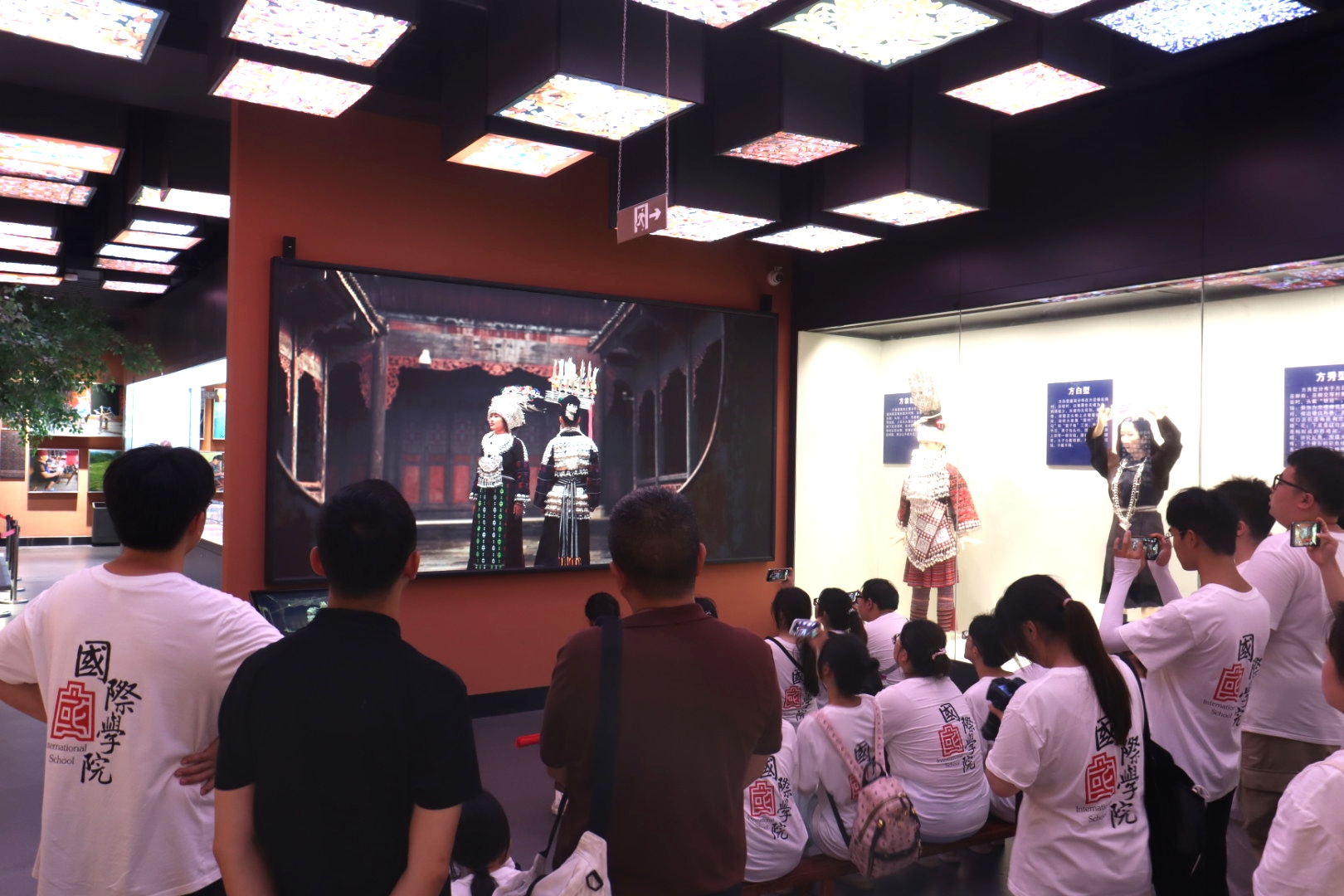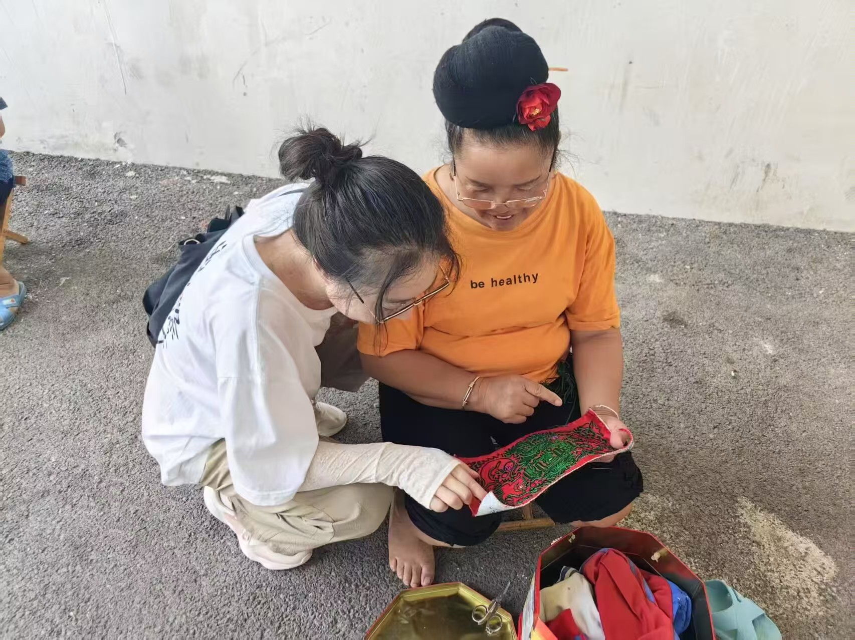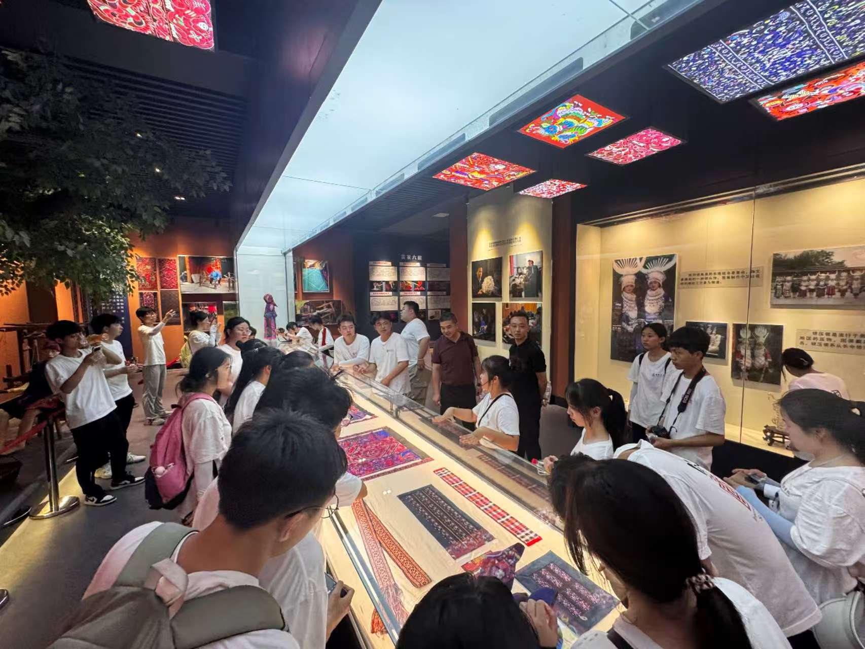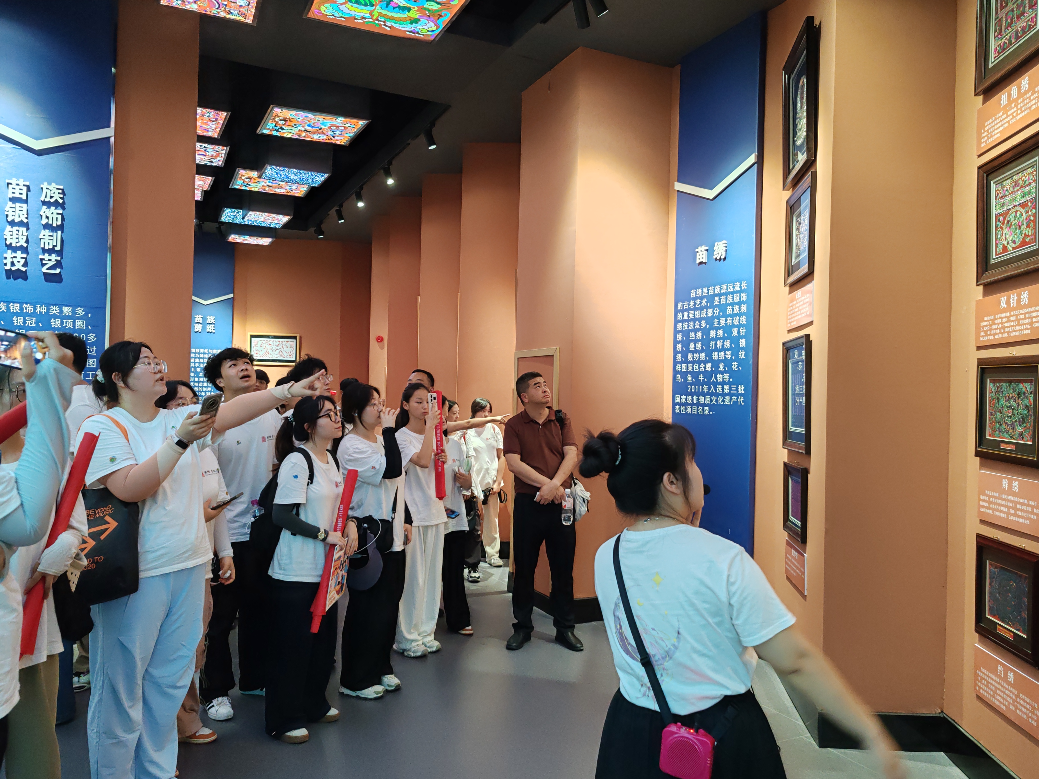 “同心共筑中国梦,民族团结一家亲”实践团在苗疆姊妹广场宣讲民族政策,在台江非遗展览馆感悟“银冠上牡丹纹与蝴蝶纹共生”的融合智慧。跟着苗族阿婆学苗绣、听苗族大叔讲邻里互助故事,文化传承的接力棒在青春手中传递。