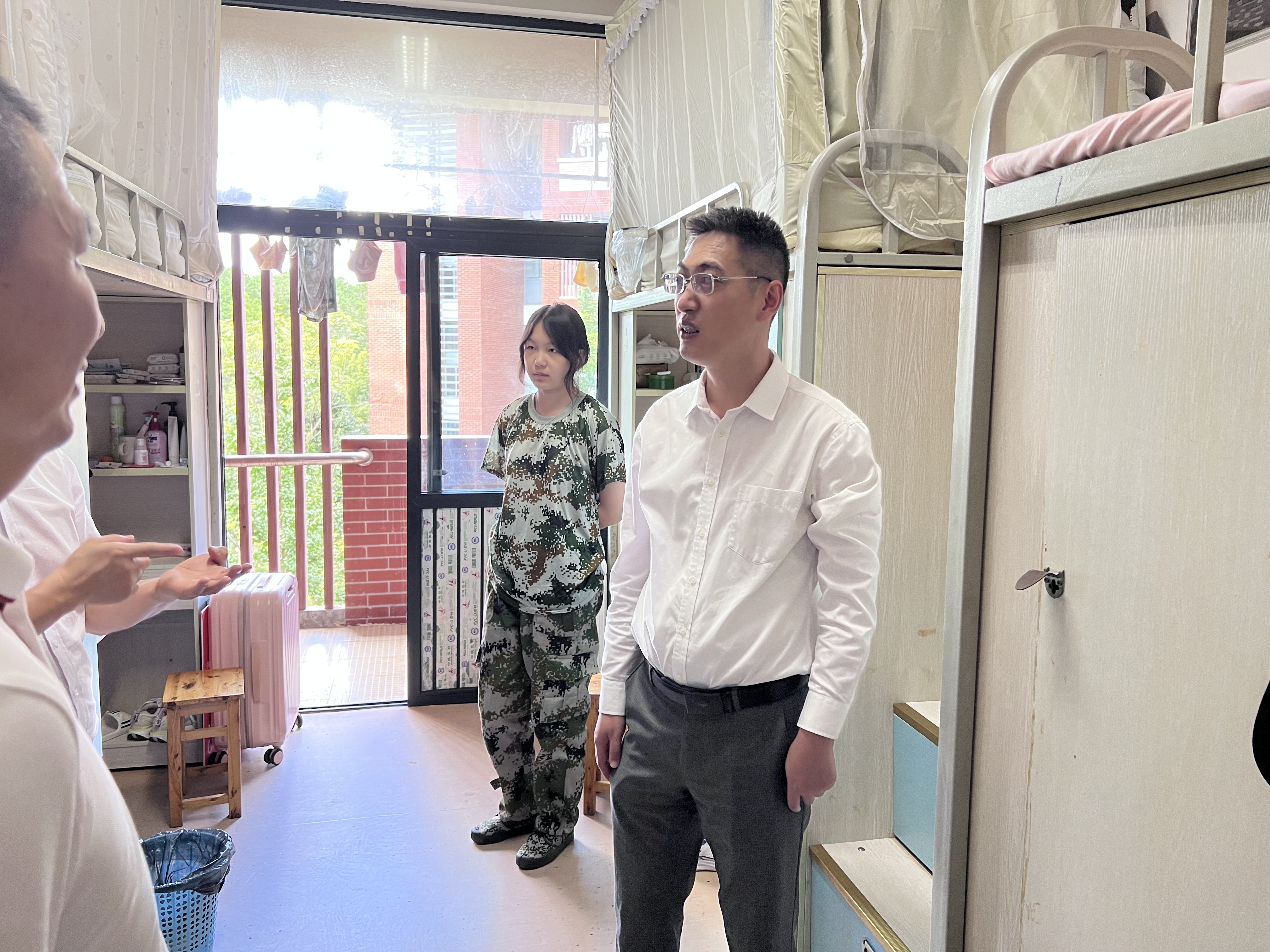 声声关切传递着学校的温暖,浓浓师生情搭建起沟通的桥梁。校领导率队深入寝室走访慰问,不仅充分体现了学校对学生的关心与爱护,更为大家注入了奋进的信心与动力,让同学们对未来的校园生活充满了期盼与憧憬,生动彰显了“以学生为本”的服务理念,有效增强了新生对学校的认同感和归属感。