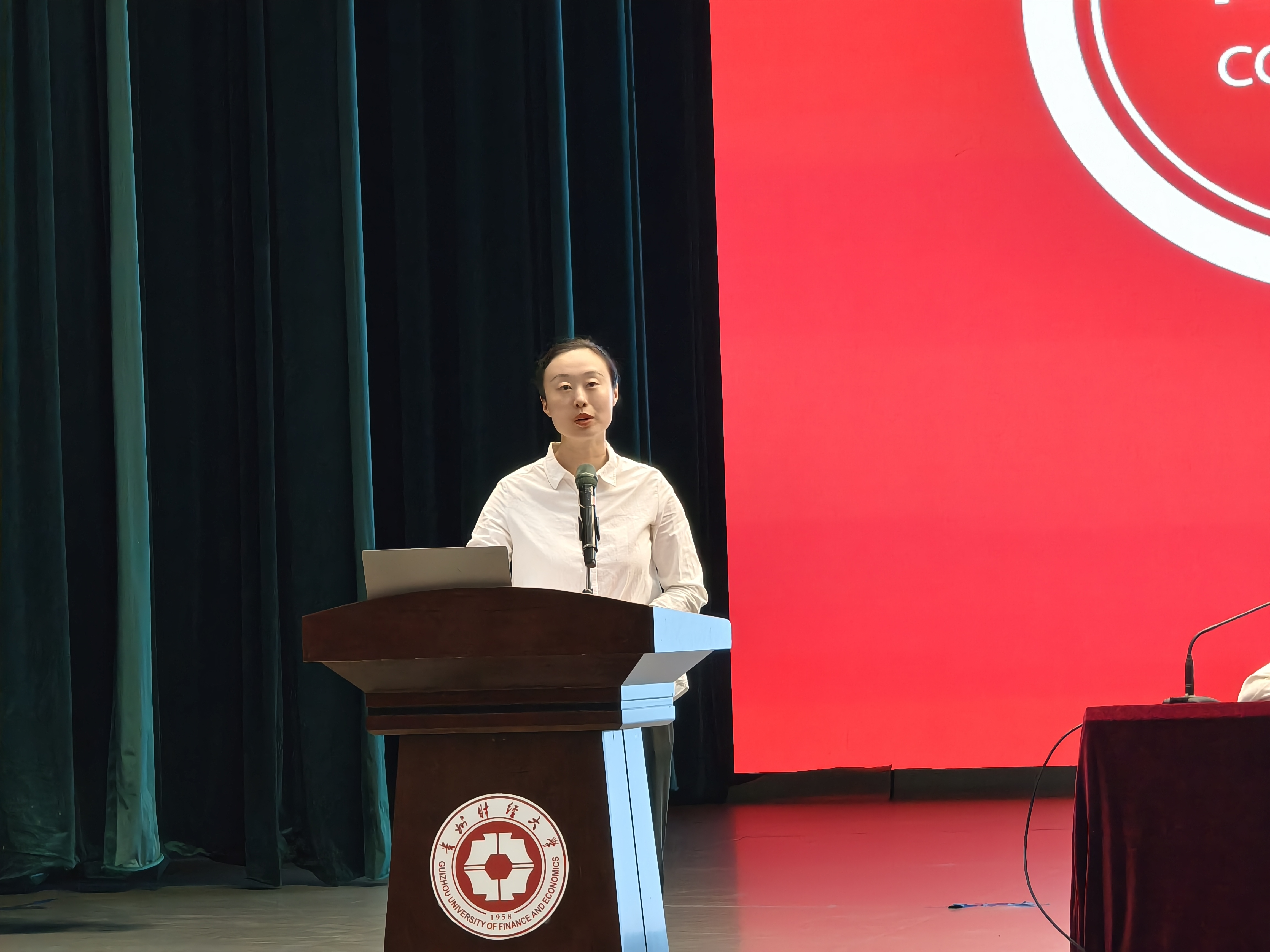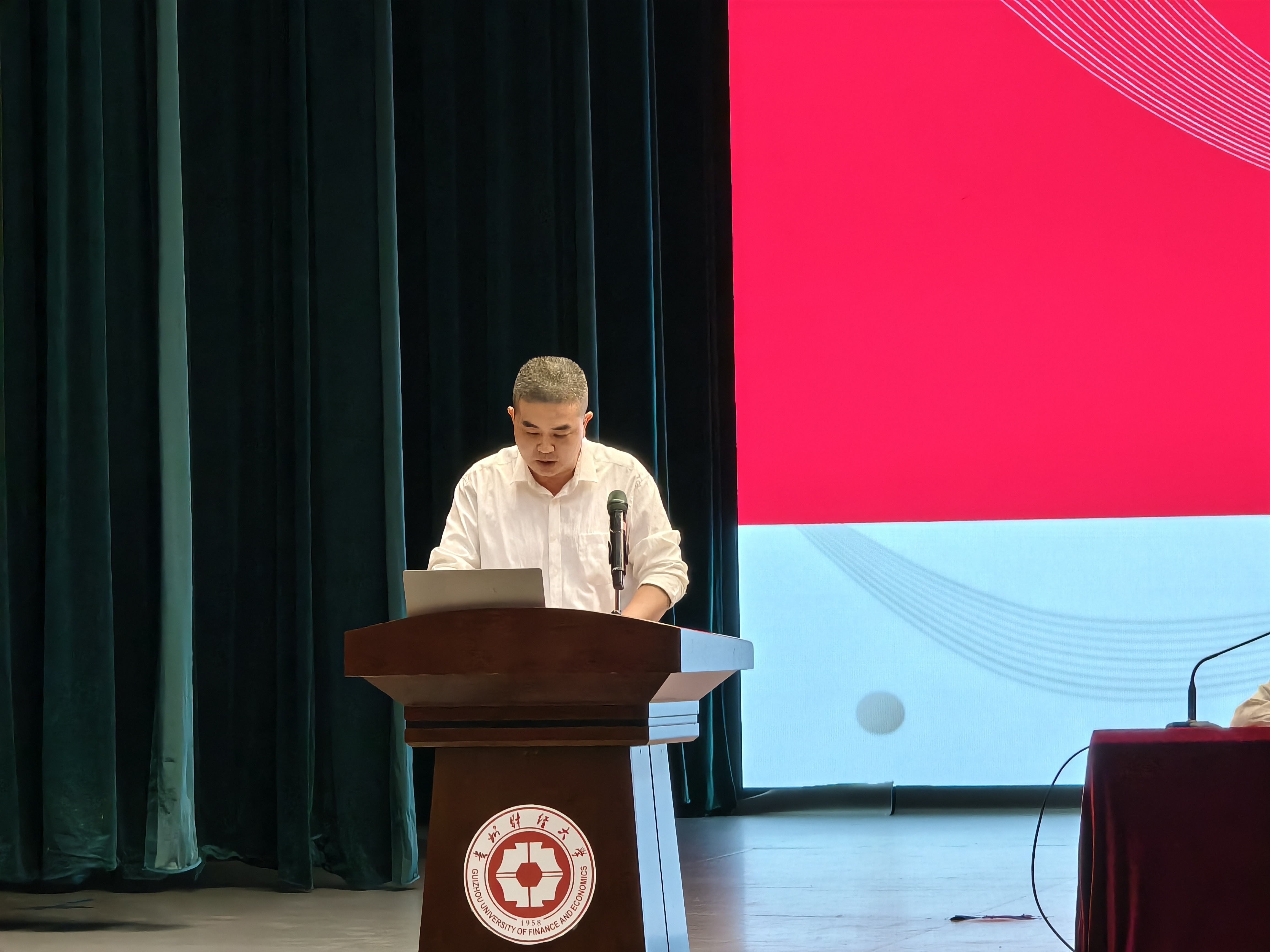 姜友文介绍学校和学院发展历程、国际化办学特色及人才培养成果。向同学们详细介绍了学校和学院的历史和发展现状。勉励新生珍惜时光、树立理想,积极参与国际交流与实践,成为具有国际化视野和跨文化交流能力的高素质人才。