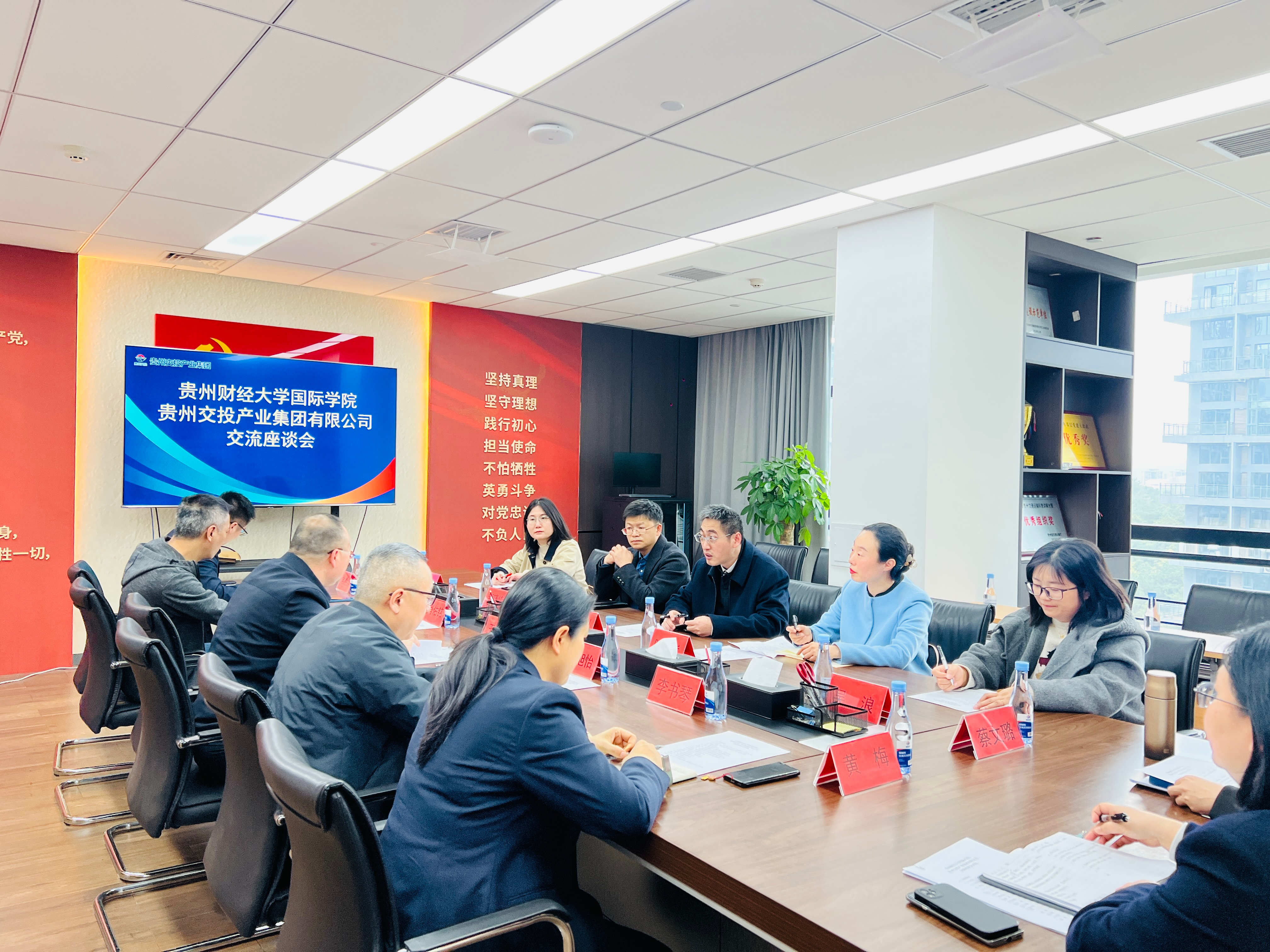 党委副书记陈嵩、副院长邹晓峰,学生科吴浪、王伟苗及贵州交通投资集团有限公司党委委员、副总经理王启乔及职能部门负责人参与座谈。
