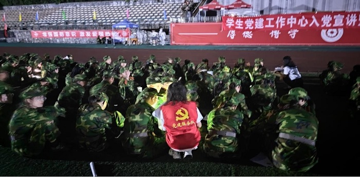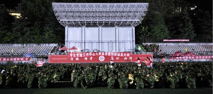 学生党建工作中心于9月15日晚在鹿冲关足球场举办新生入党宣讲暨招新动员大会。党建工作中心学生干部、部分成员及全体2021级新生参加了本次活动。