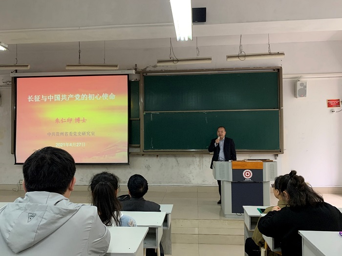 朱仁印以《长征与党的初心使命》为题,长征为切入点,生动地讲述了中国共产党为了革命事业和人民幸福而开展的艰苦卓绝斗争并深入地为同学们讲解了“四史”的概念定义与中国共产党的初心使命通过介绍红军在长征中所表现出来的坚强斗志和伟大担当,让同学们充分感受到中共党员奋勇拼搏、刻苦顽强的精神以及中国共产党始终把人民放在心中最高的位置的态度。