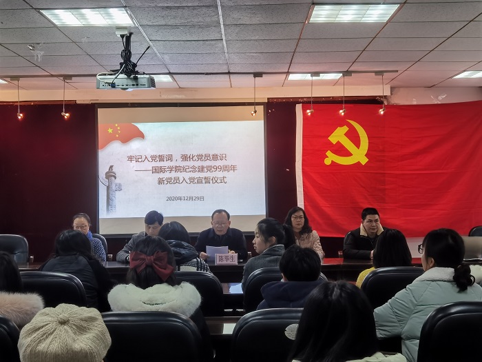 党委书记陈毕生,党委副书记黄暐、王瑛以及各党支部书记出席,有68名新党员及各党支部党员代表参加。此次入党宣誓仪式由校党政办副主任王治航主持。