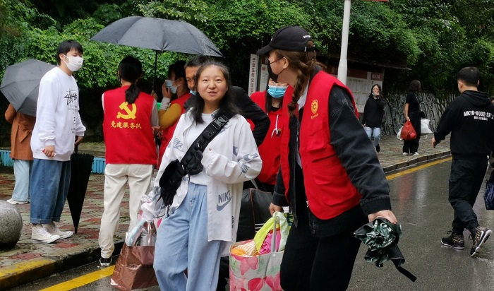 细雨绵绵下,学生党员志愿者们都热情高涨,将无私奉献、吃苦耐劳的精神进行到底,引导新生办理报到手续,帮助新同学搬运行李物资、安排住宿,耐心仔细地为新生解答疑惑,每一名党员志愿者都充满热情和活力,践行了党全心全意为人民服务的宗旨。