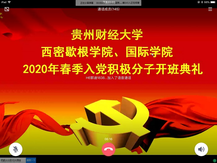 党委书记陈毕生、党委副书记黄暐、王瑛、各学生党支部支部书记、党办老师及137名入党积极分子培训班学员参加了此次线上典礼。