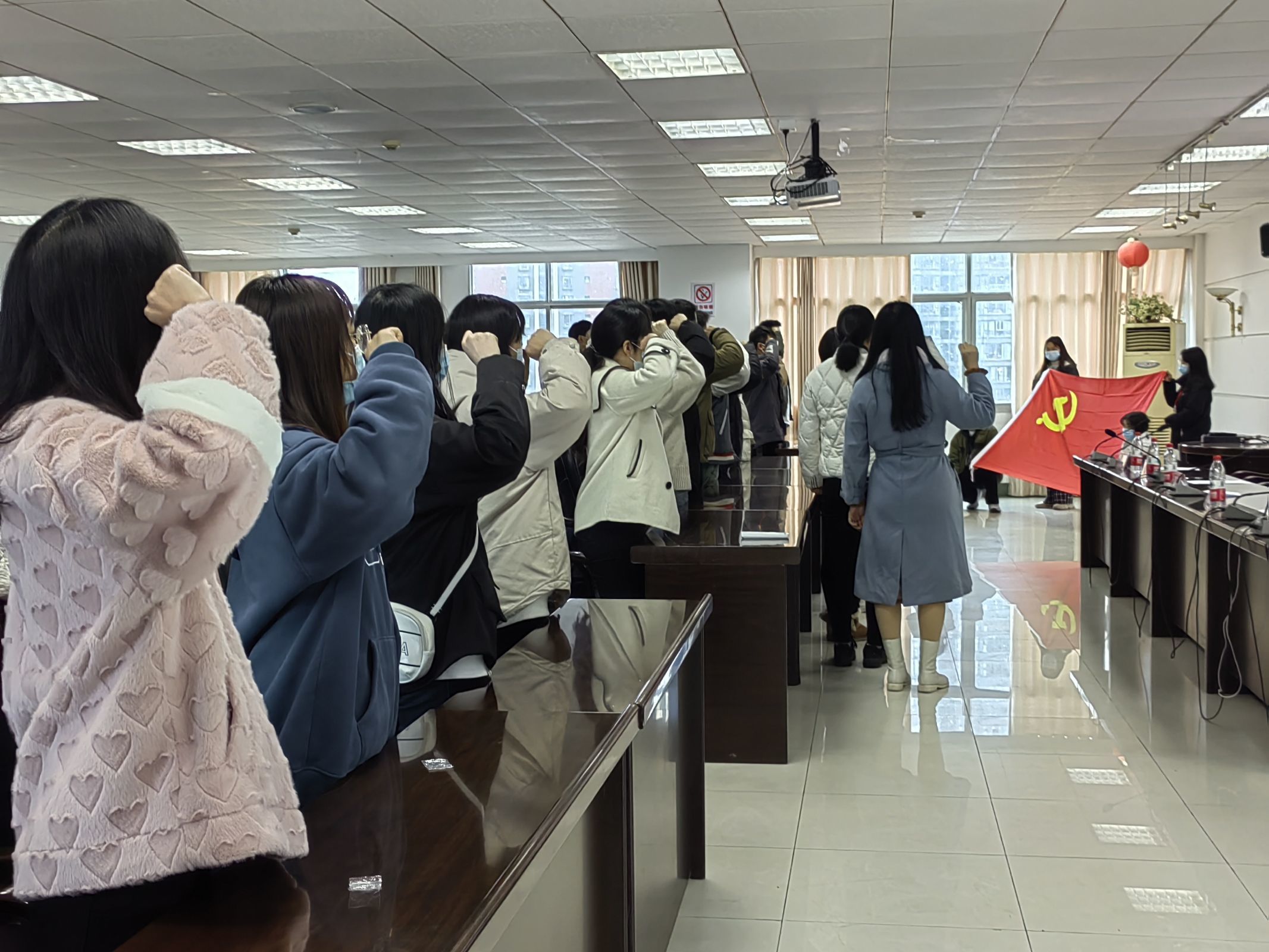 在行政楼六楼会议室举行新党员入党宣誓仪式。学院党委副书记肖启迪、党办老师、各党支部书记、73名新党员参加,仪式由学院正科级专职组织员潘吉主持。