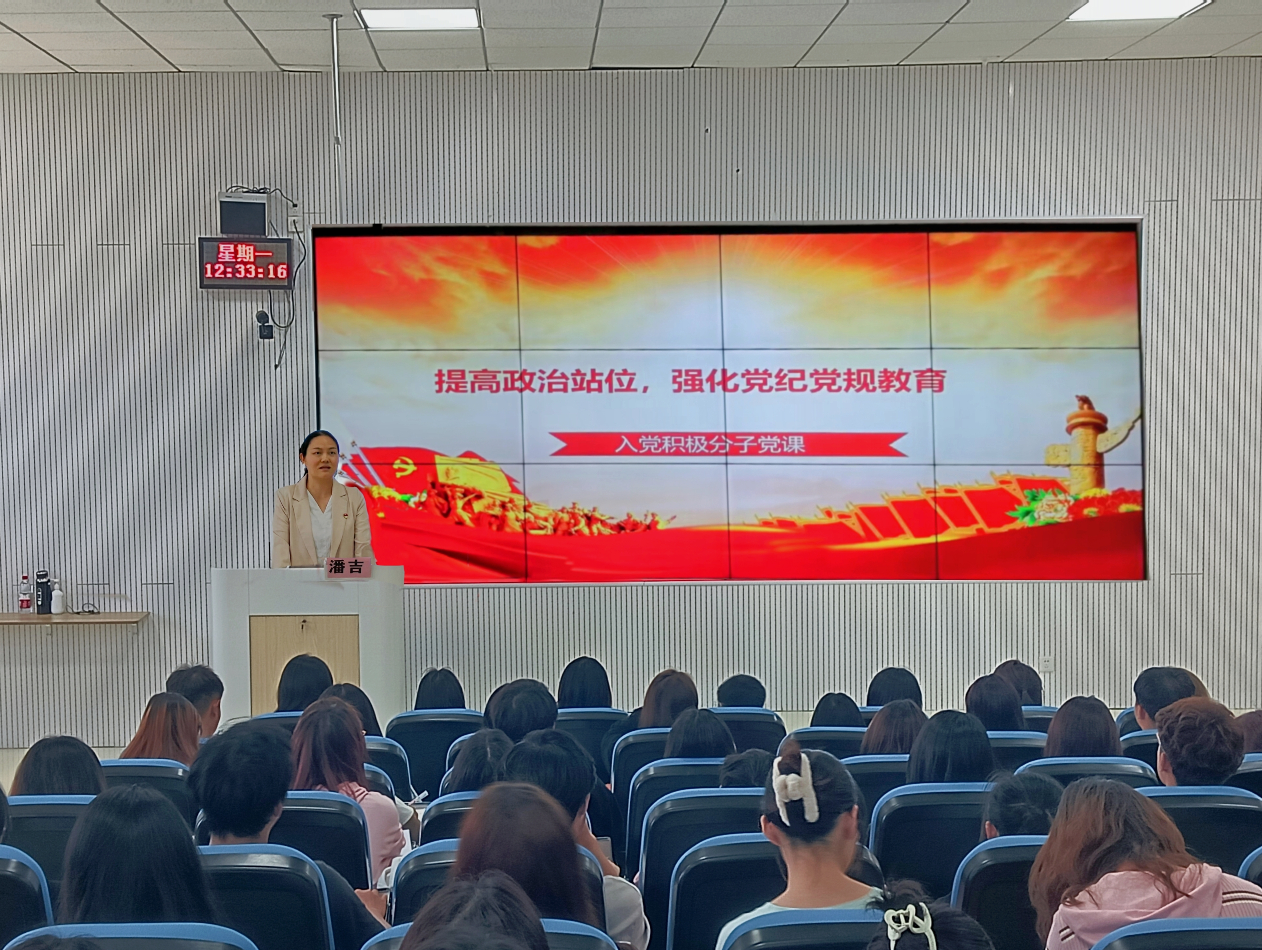 党委委员潘吉在乐学楼201报告厅为2024年春季入党积极分子和学生党员作《提高政治站位,强化党纪党规教育》专题讲座。