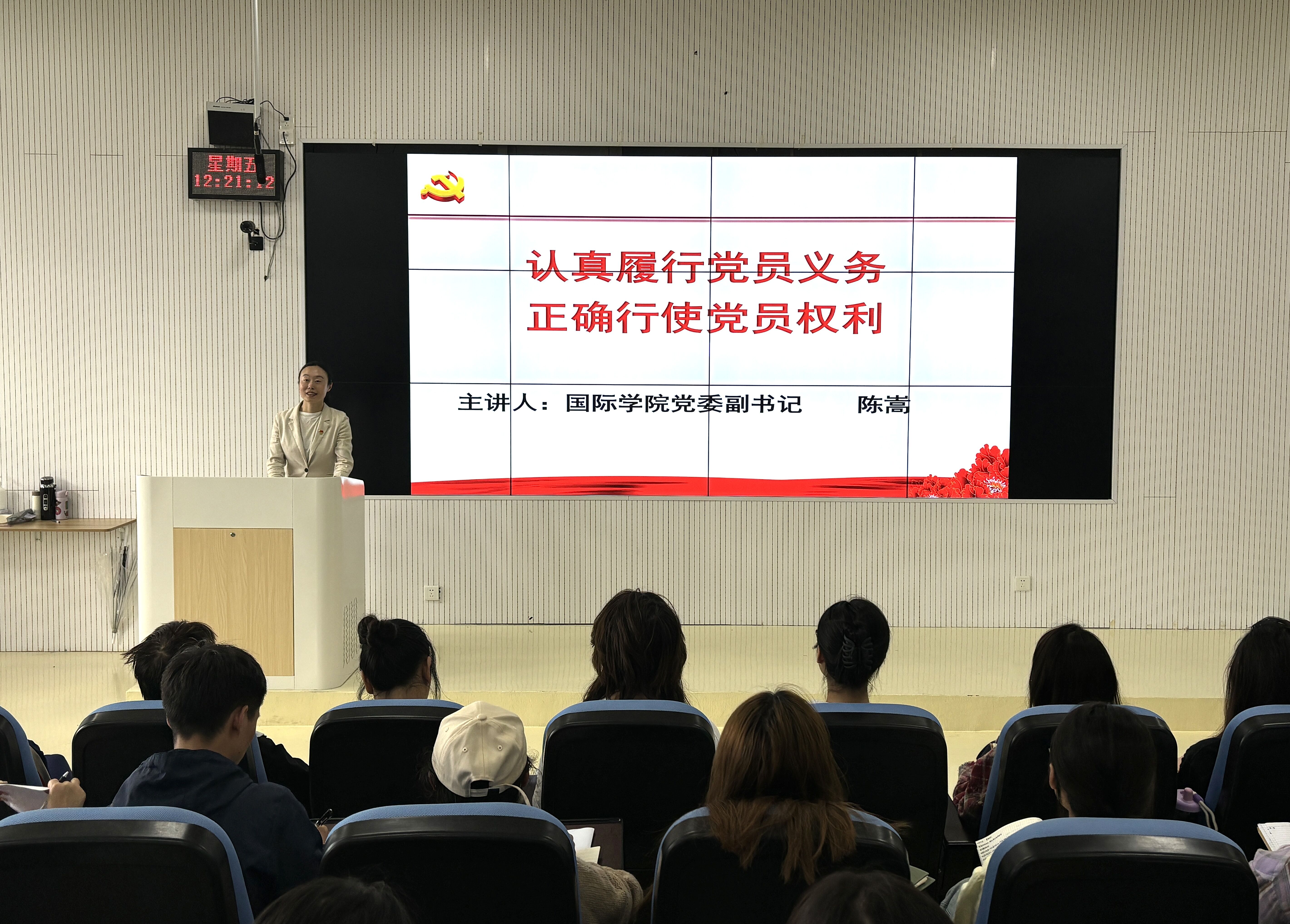 党委副书记陈嵩在乐学楼201报告厅为2024年秋季入党积极分子和各支部党员作“认真履行党员义务,正确行使党员权利”专题党课