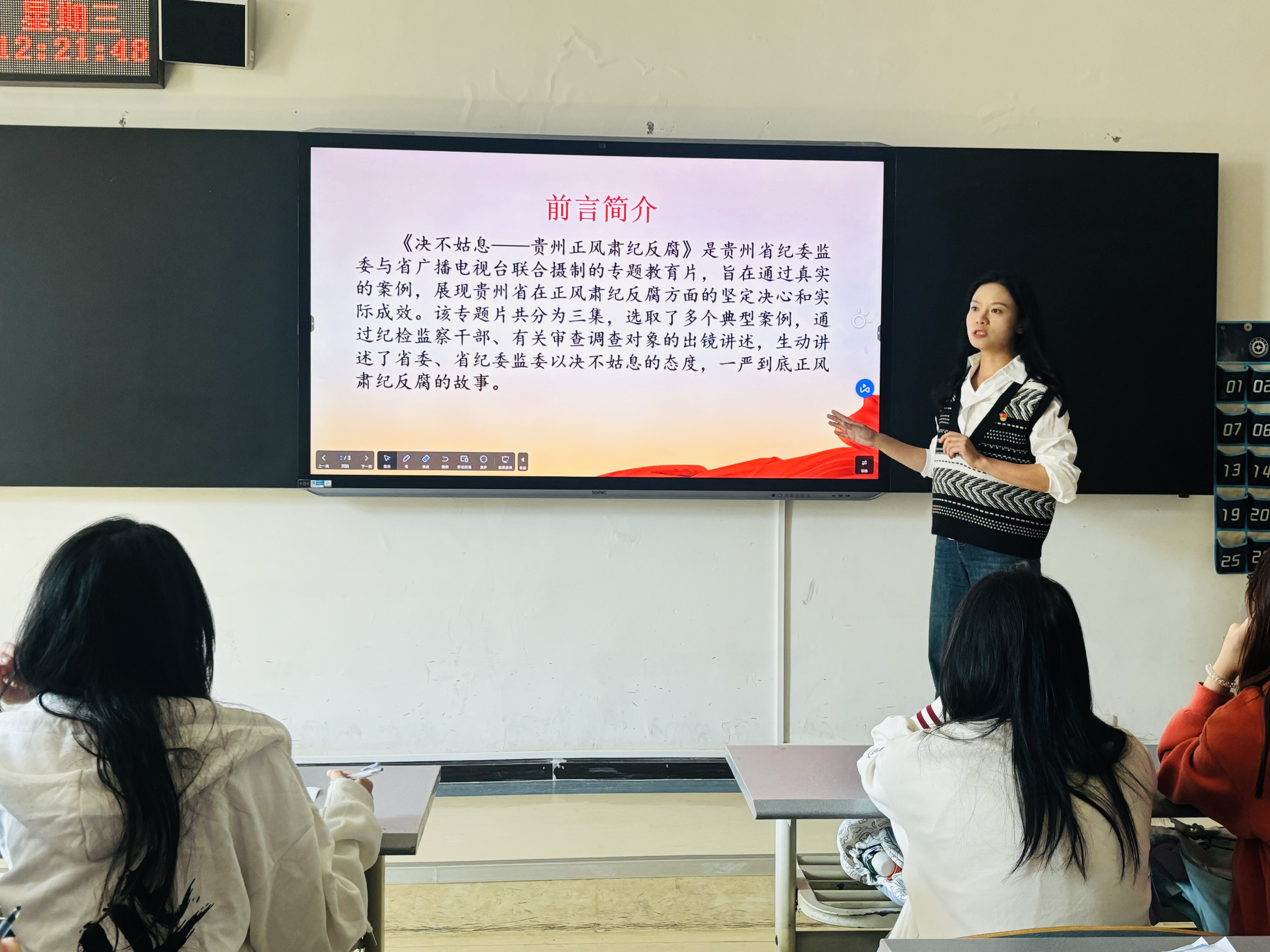 本次警示教育课以《绝不姑息——贵州正风肃纪反腐》为主题,通过多个典型案例,深度剖析了一些党员干部因理想信念缺失、政治意识淡薄、纪律观念松弛,最终走向违法违纪道路的过程,进一步展现了贵州在正风肃纪方面的决心和实际成效。谢凝云指出,全体学员要从案例中吸取教训,时刻保持清醒的头脑,自觉遵守党的纪律。