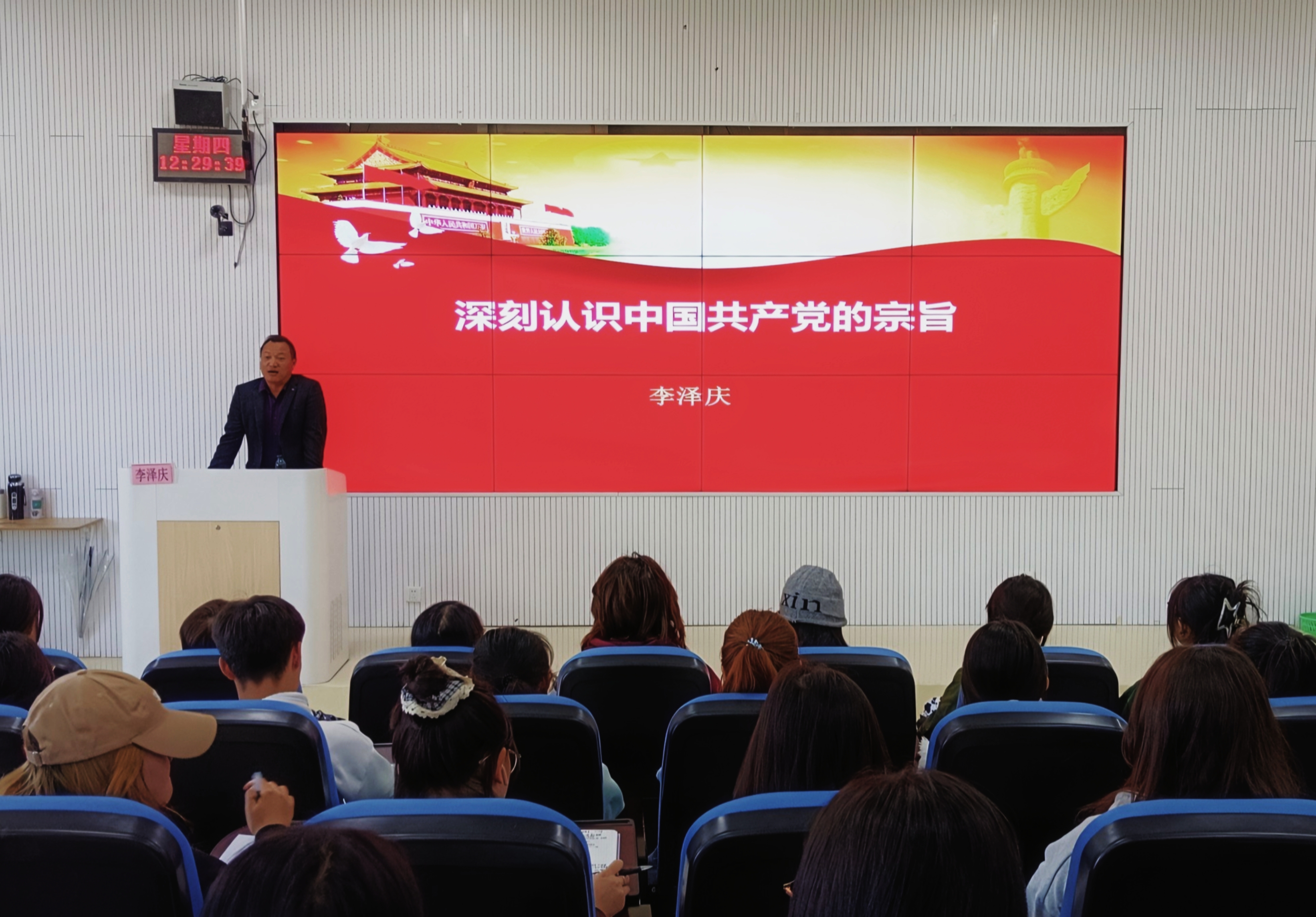 党委组织部组织科科长李泽庆在乐学楼201教室开展“深刻认识中国共产党的宗旨”专题党课,2024年秋季入党积极分子培训班学员及各支部师生党员参加。