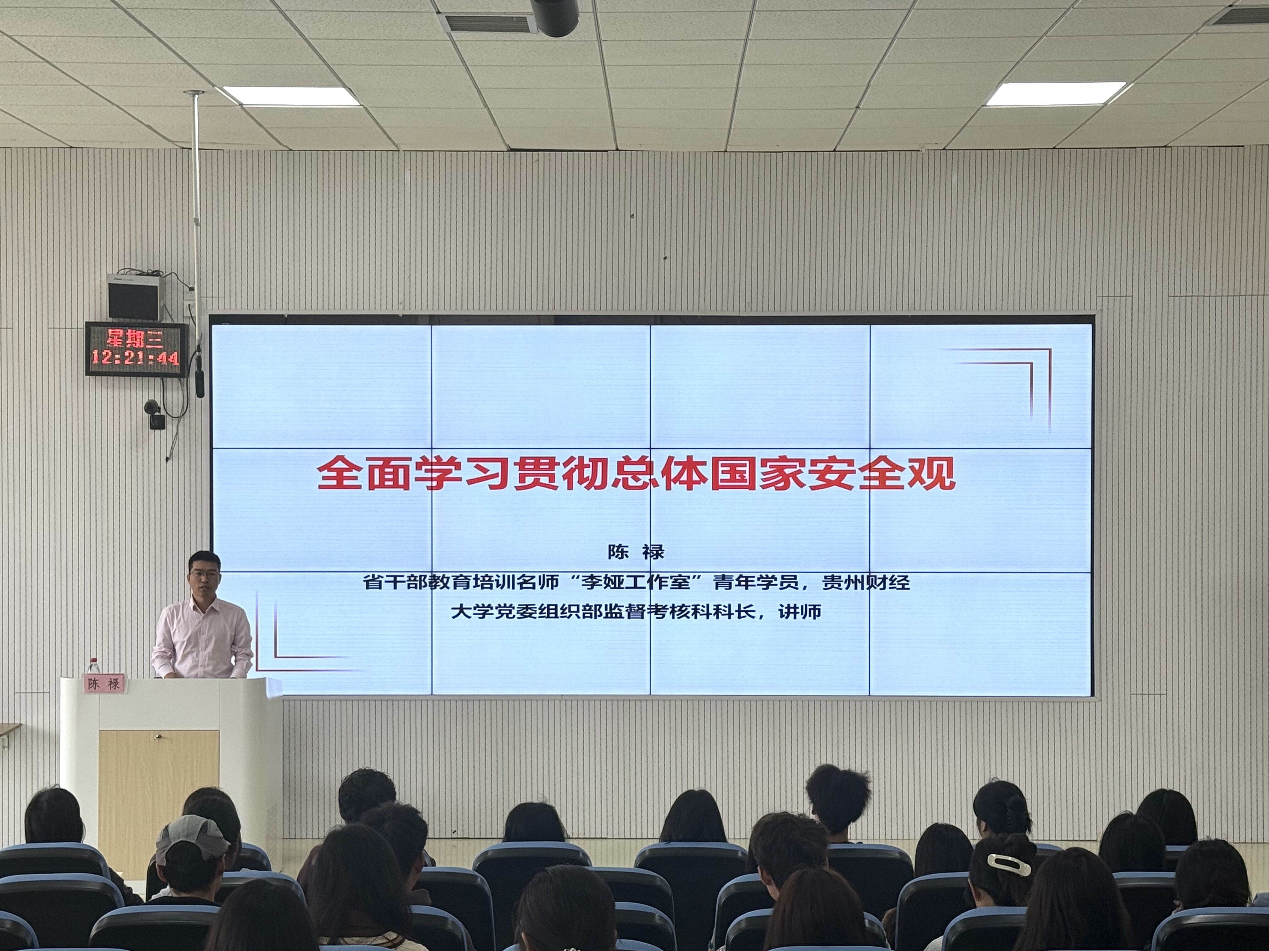 党校在乐学楼201开展题为“全面学习贯彻总体国家安全观”的专题党课,校党委组织部监督考核科科长陈禄主讲,学院全体党员参加。