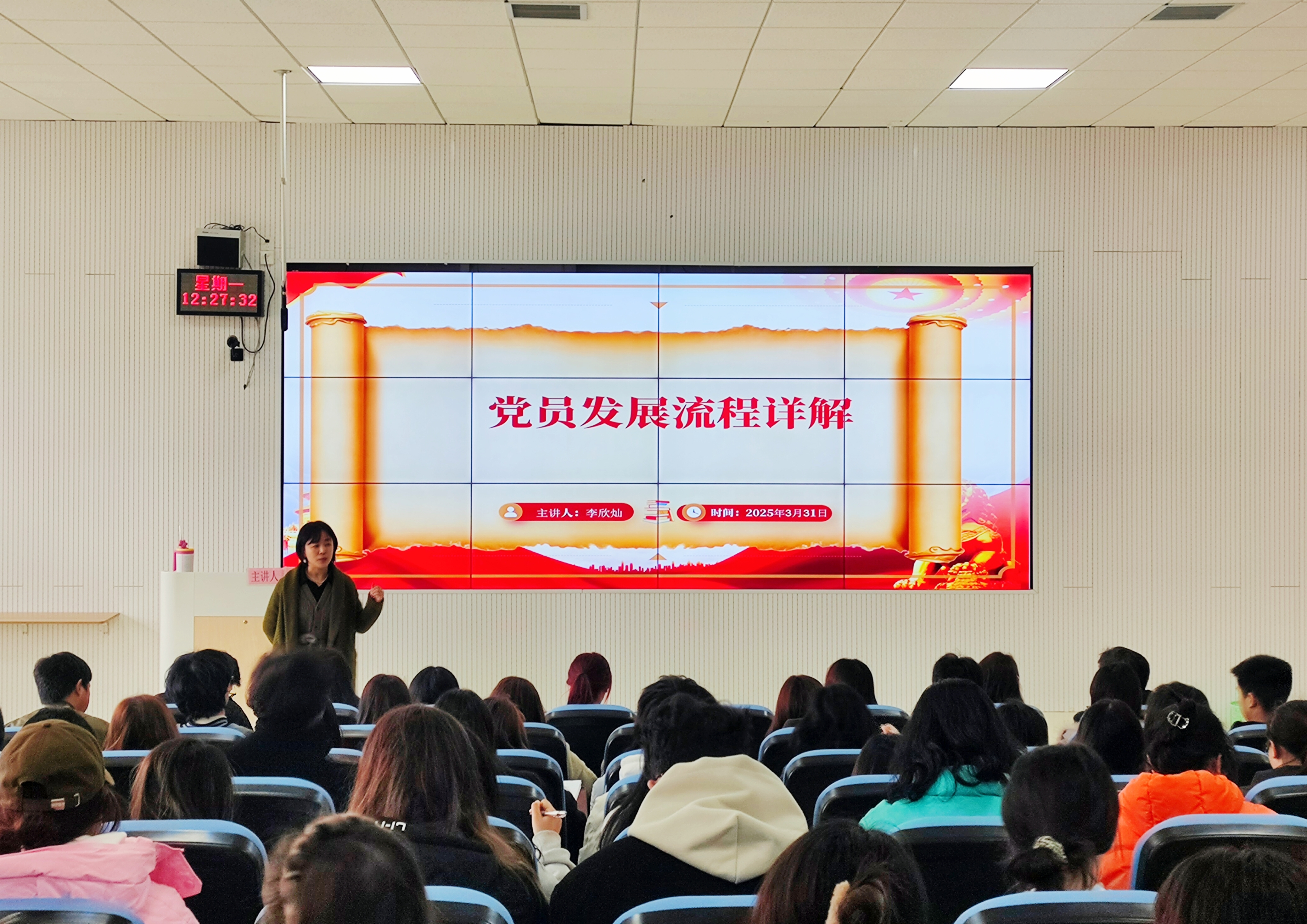 正科级专职组织员李欣灿在乐学楼201教室为院党校2025年春季入党积极分子作《党员发展的流程》专题党课。