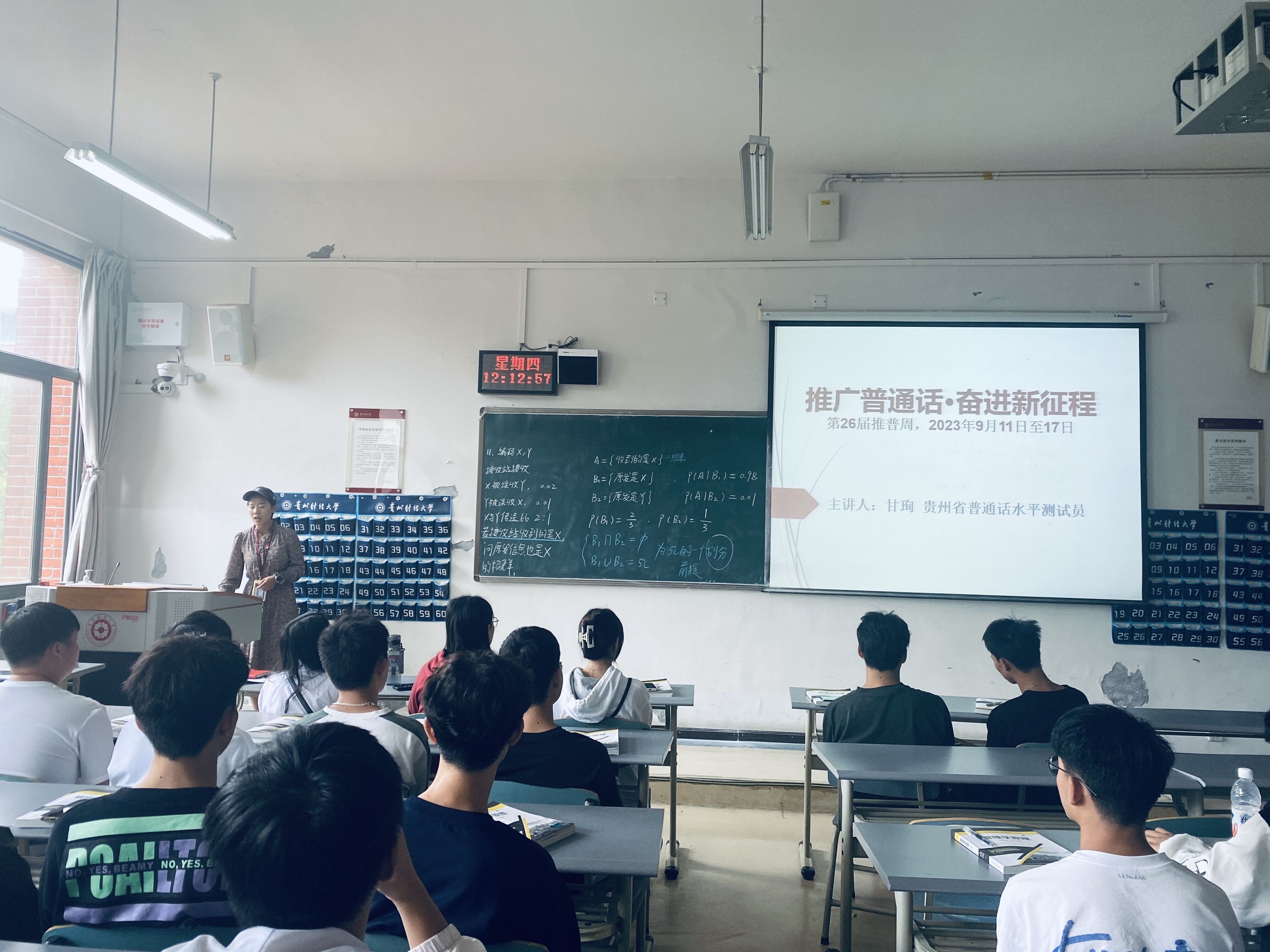 活动周邀请贵州省普通话水平测试员甘珣老师进行了主题为“推广普通话·奋进新征程”的宣传分享。通过此次宣传,力求帮助学生在能够说好普通话的同时也培养较强的语言交流能力;希望学生在校时间说普通话,借此培养学生对普通话的语感和对母语的热爱。
