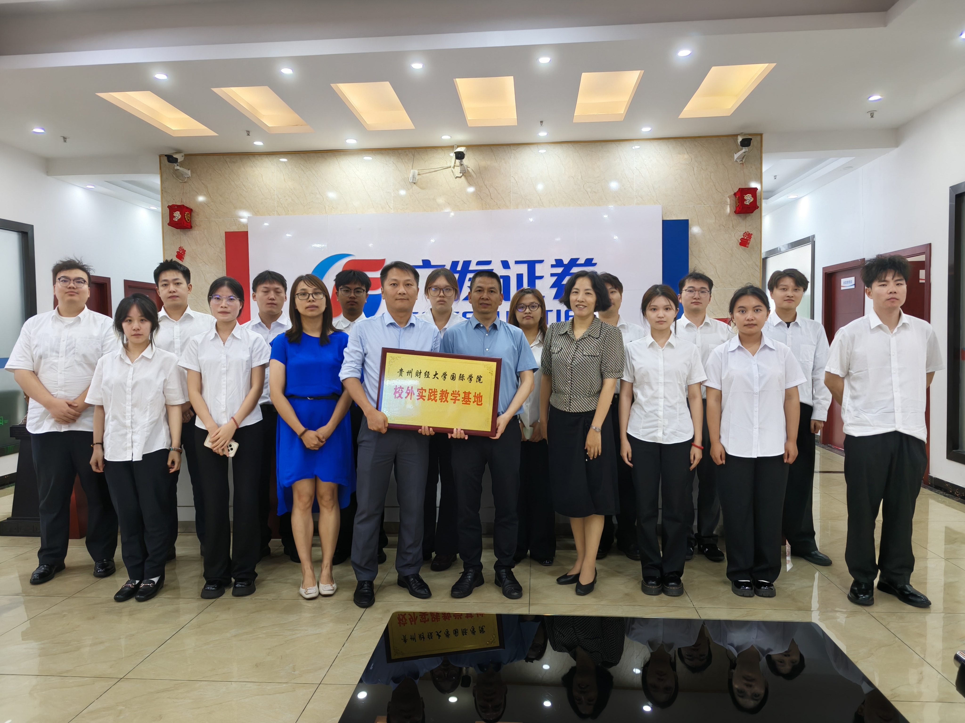 院长姜友文带队,副院长刘利音、教务科副科长沙静前往广发证券股份有限公司贵阳延安中路证券营业部进行实习实训基地签约和授牌,同时看望慰问了15名22级金融在该基地进行暑期专业实习的学生。
