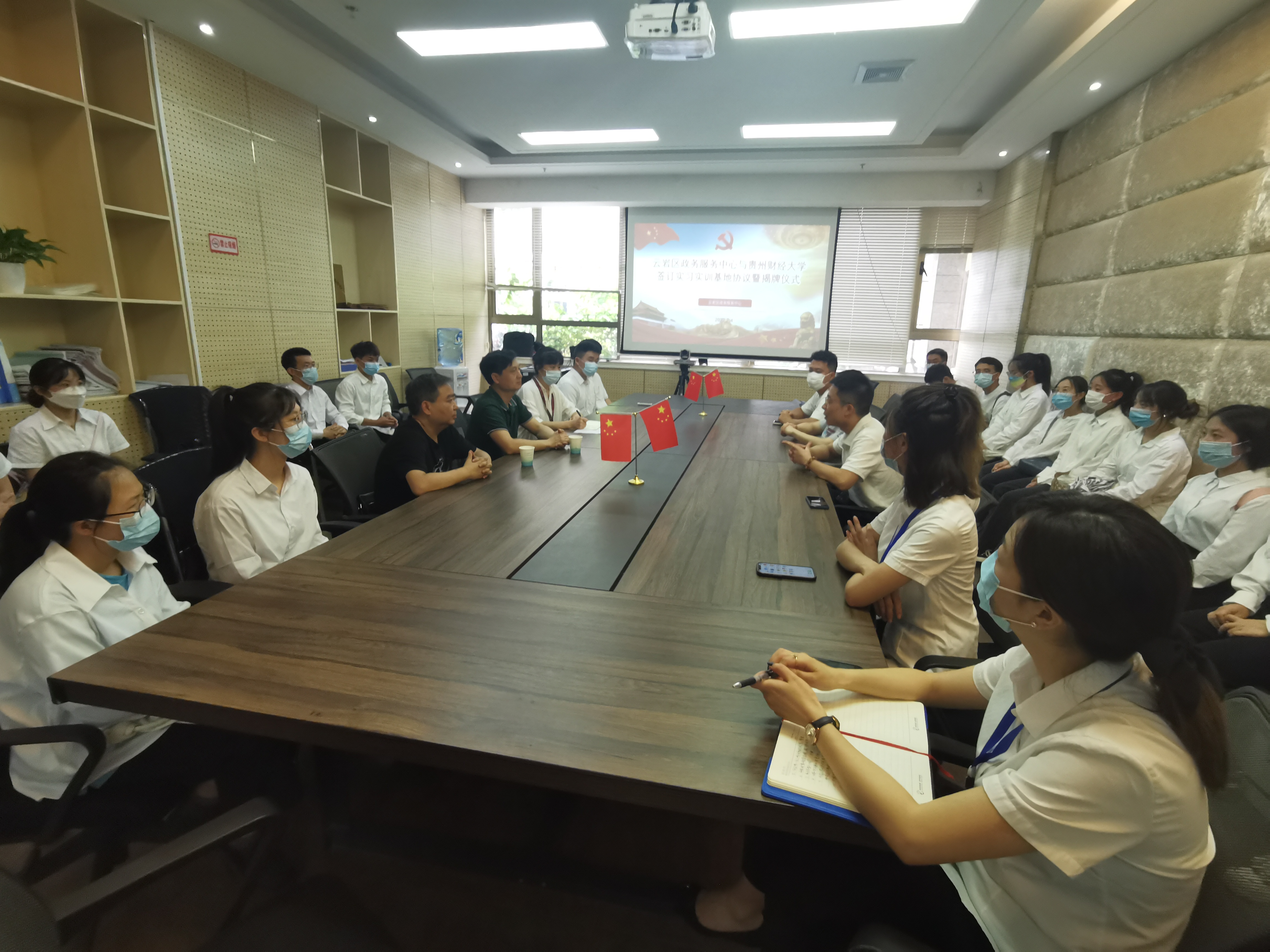 党委书记王治航带队前往云岩区政府政务服务中心进行实习实训基地签约和授牌,20名19级学生将在该基地开展为期四周的暑期专业实习。