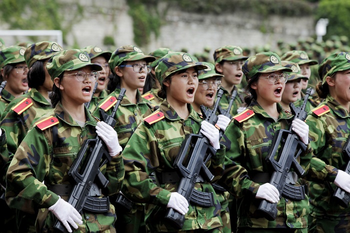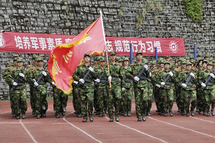 2021级新生分列式列队完毕,请您指示”。 刘雷宣布按计划进行。