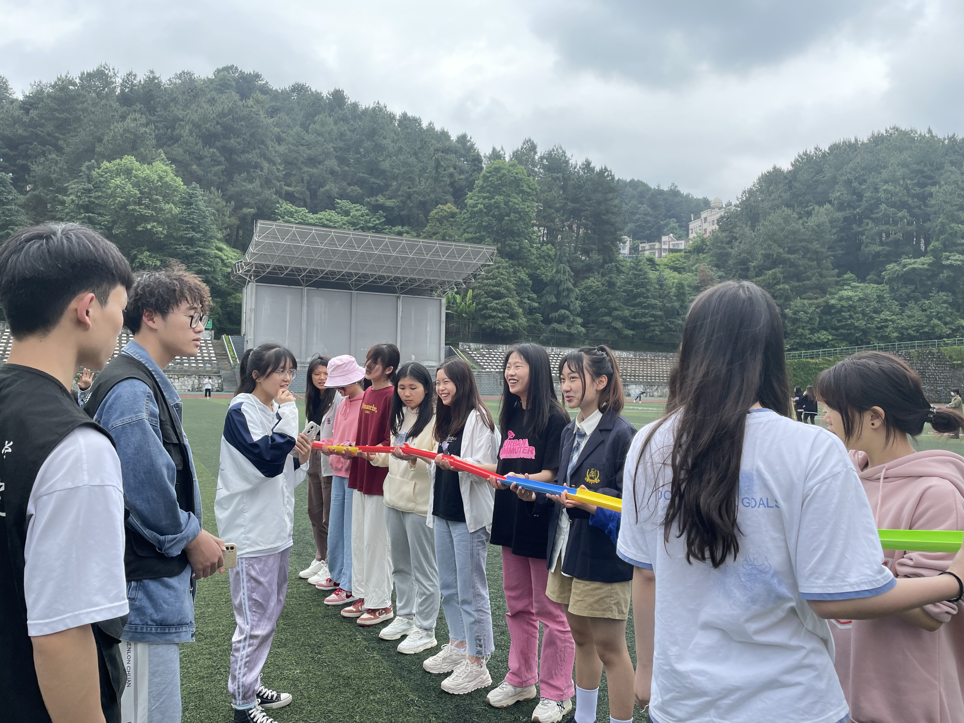 同学们积极参与其中,在赛场上挥洒活力,展现风采,彰显斗志。在“两人三足”活动现场,绑带将同学们团结成一个整体,将一个个“我”变成了“我们”,也将同学们的心串连在一起。在“珠行万里”活动场地,滚动的珠子寄满希望,航行于大家的心弦,连接的U型槽间凝聚着团结。在“不倒森林”活动中,信任在棍子的交替之间传递,友谊伴随着移动的脚步不断增进。“背气球”活动现场,气球的爆炸声彰显的是同学们团结合作的力量。