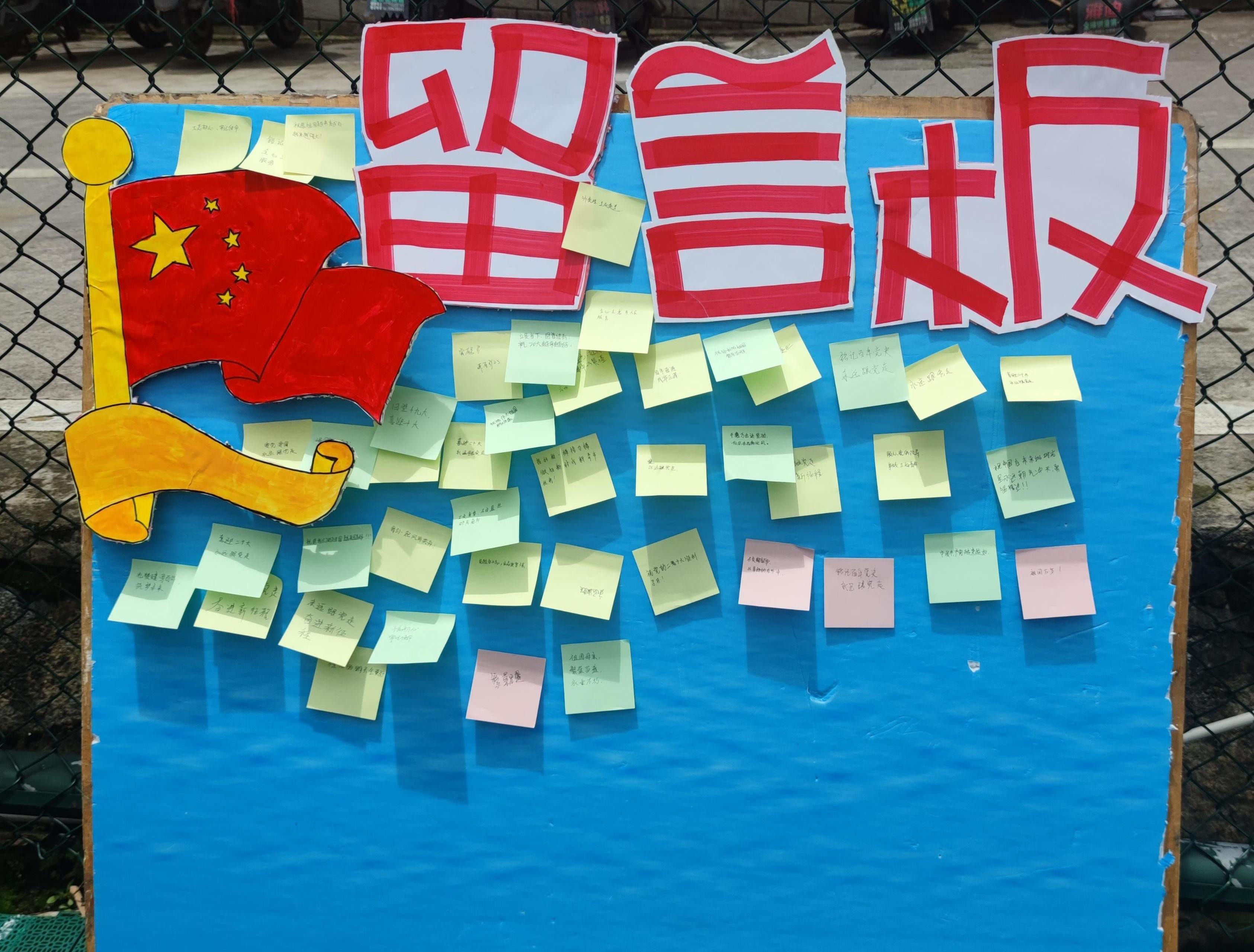 本次团日活动包括知识竞答和留言两大环节。在“青春作答”知识竞答环节,各团支部成员在团支部书记带领下,踊跃参与知识竞答,进一步了解了党的百年奋斗重大成就、青年奋斗历程。在青春留言板上,同学们纷纷写下对祖国的美好祝福。一张张留言便笺,承载了同学们对党的崇敬和对祖国的热爱。