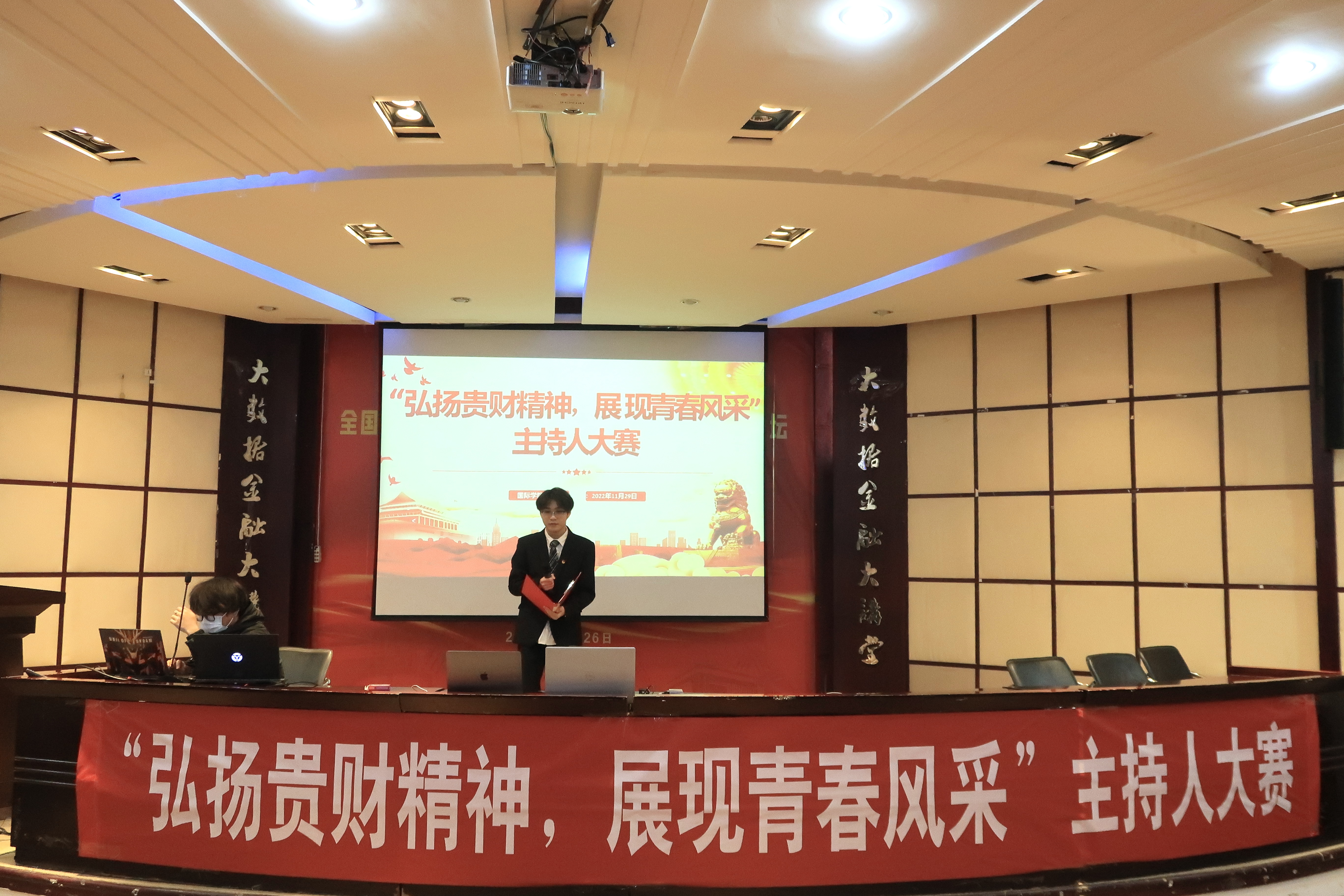 在鹿冲关校区大数据报告厅举办“弘扬贵财精神,展现青春风采”主持人大赛。