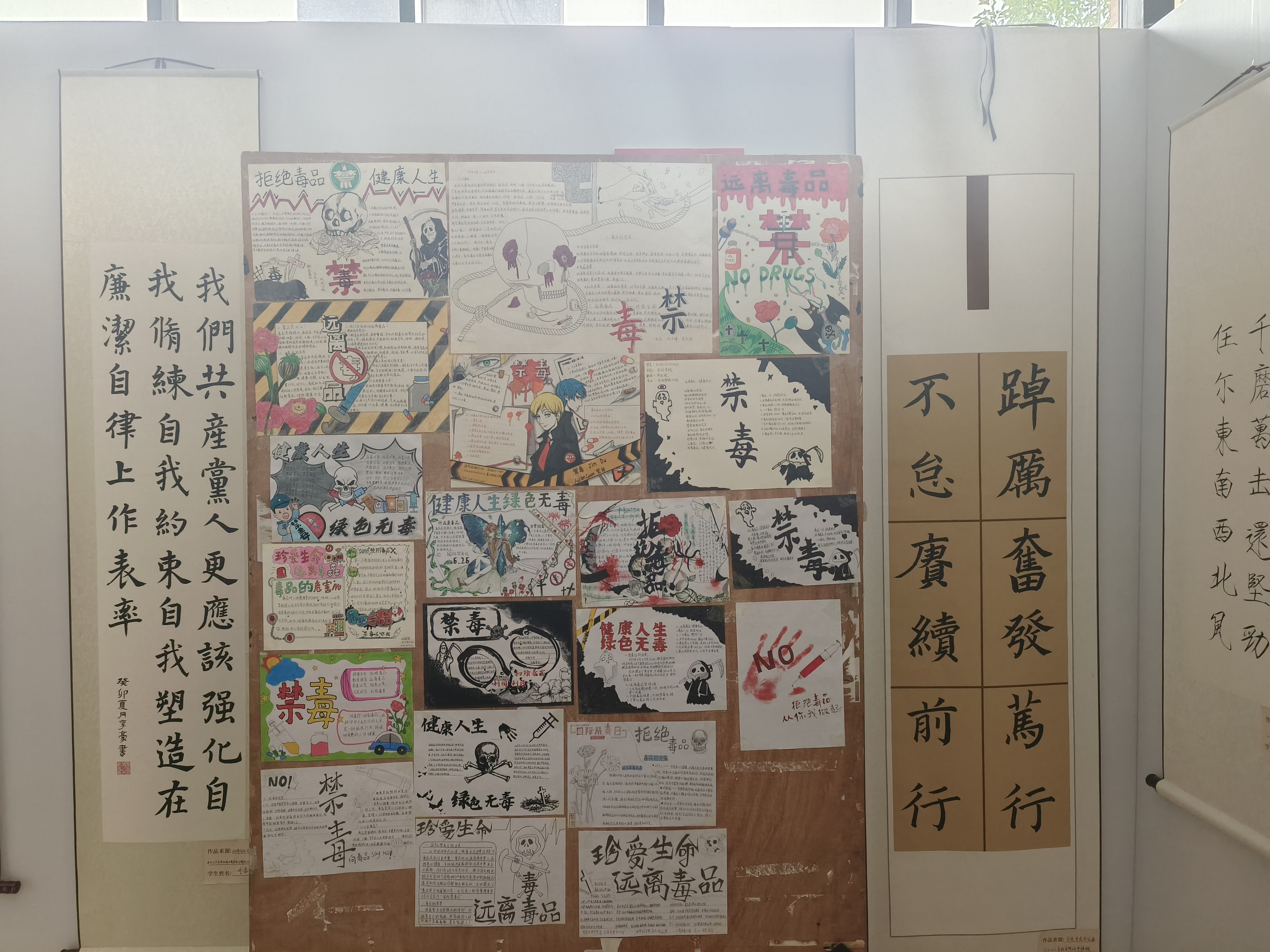 在正德楼一楼大厅举办“健康人生,绿色无毒”禁毒手抄报展示活动。