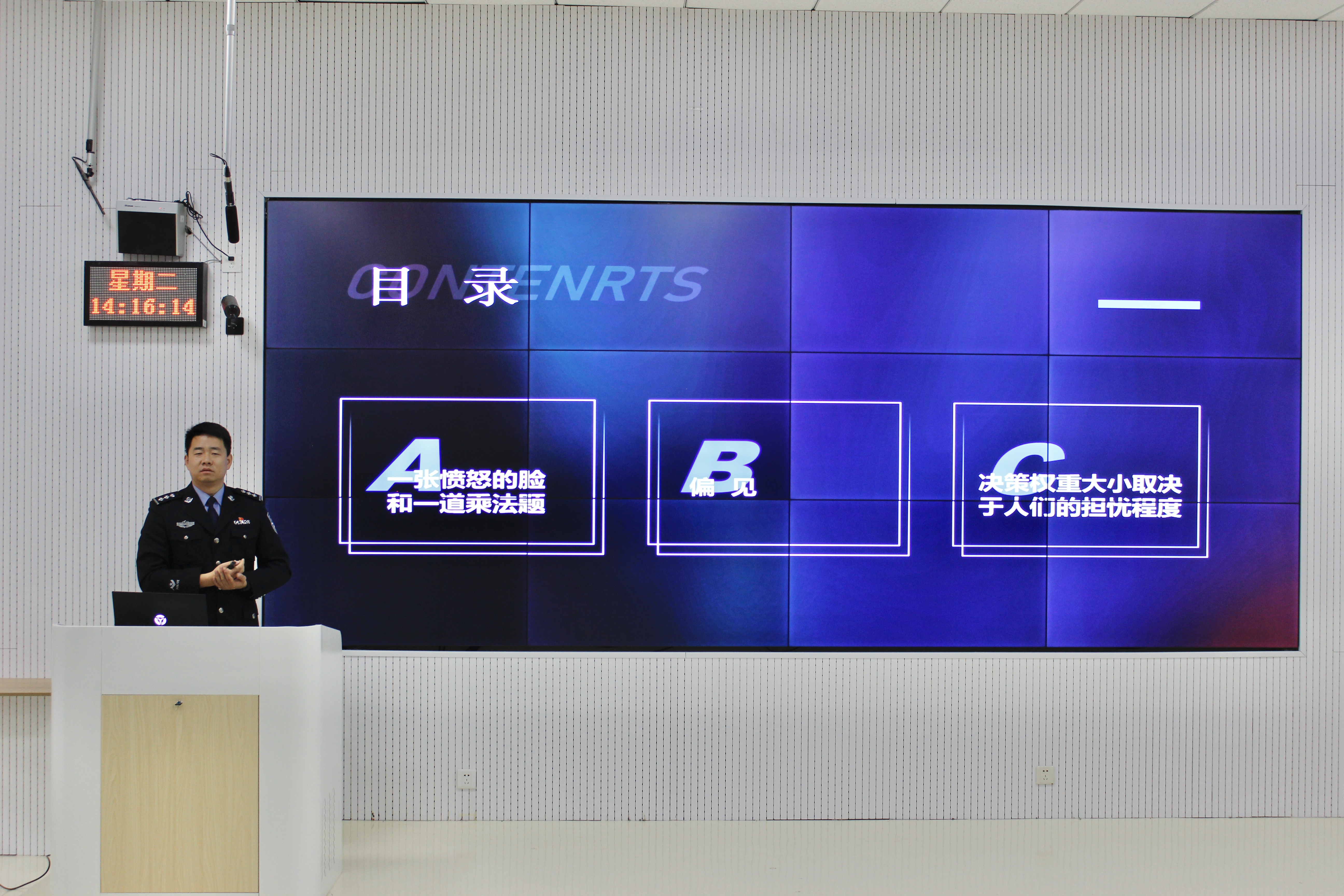 张智鹏以书籍《思考,快与慢》引入主题,从“一张愤怒的脸和一道乘法题”、“偏见”、“决策权重大小取决于人们的担忧程度”三个方面讲述了人们的思维系统给自身带来的影响。张智鹏为同学们播放了许多安全视频,在视频中大家看到了一场场交通事故的发生,深切地体会到了交通事故的危险性。随后,张智鹏用实际案例向同学们详细讲解了道路交通安全法律法规、乘车的基本常识以及交通事故的预防措施,让同学们深刻认识到交通安全的重要性。