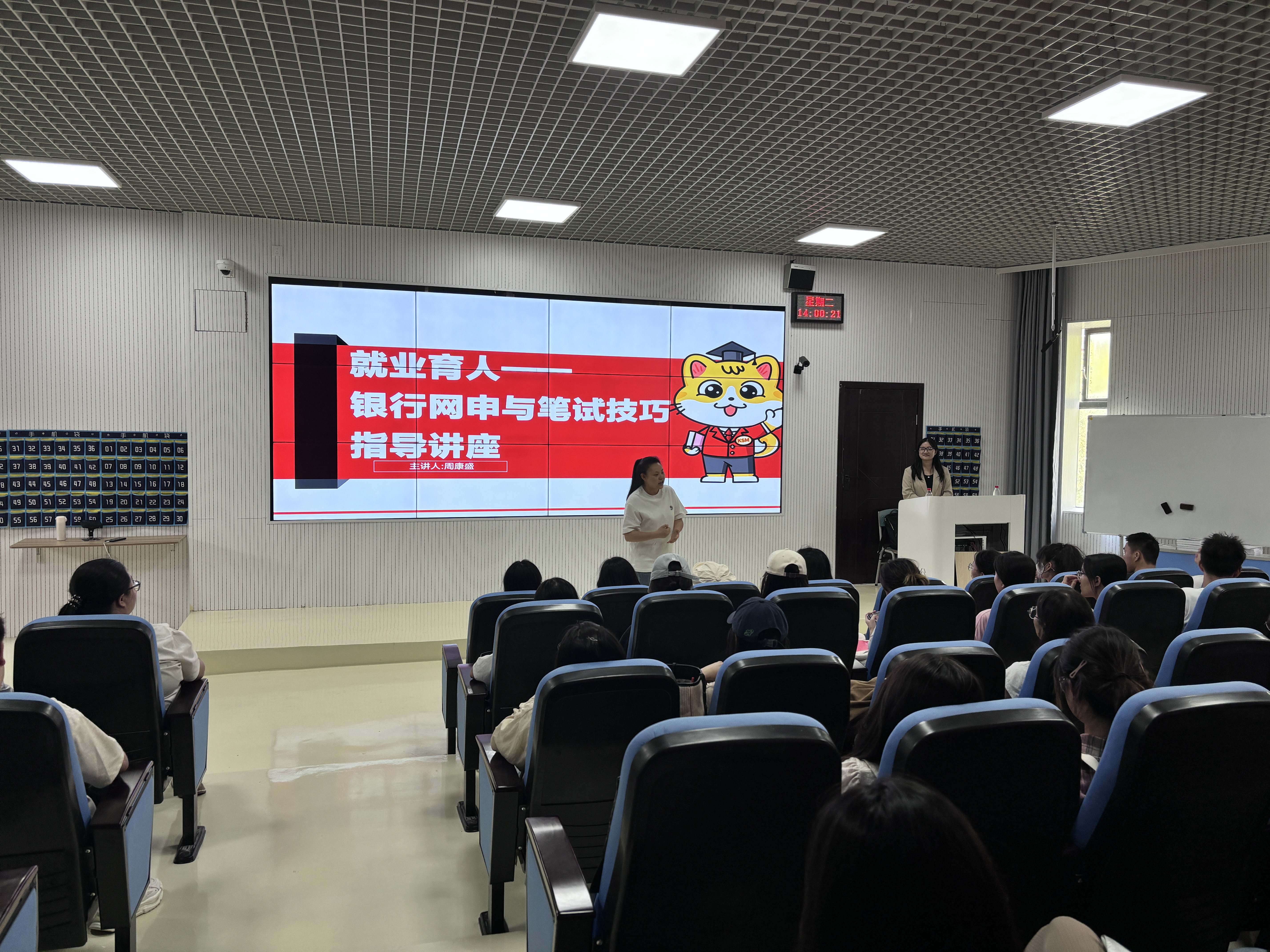 邀请贵州师范大学的周康盛老师在进学楼301教室举办“就业育人——银行网申与笔试技巧指导”讲座。