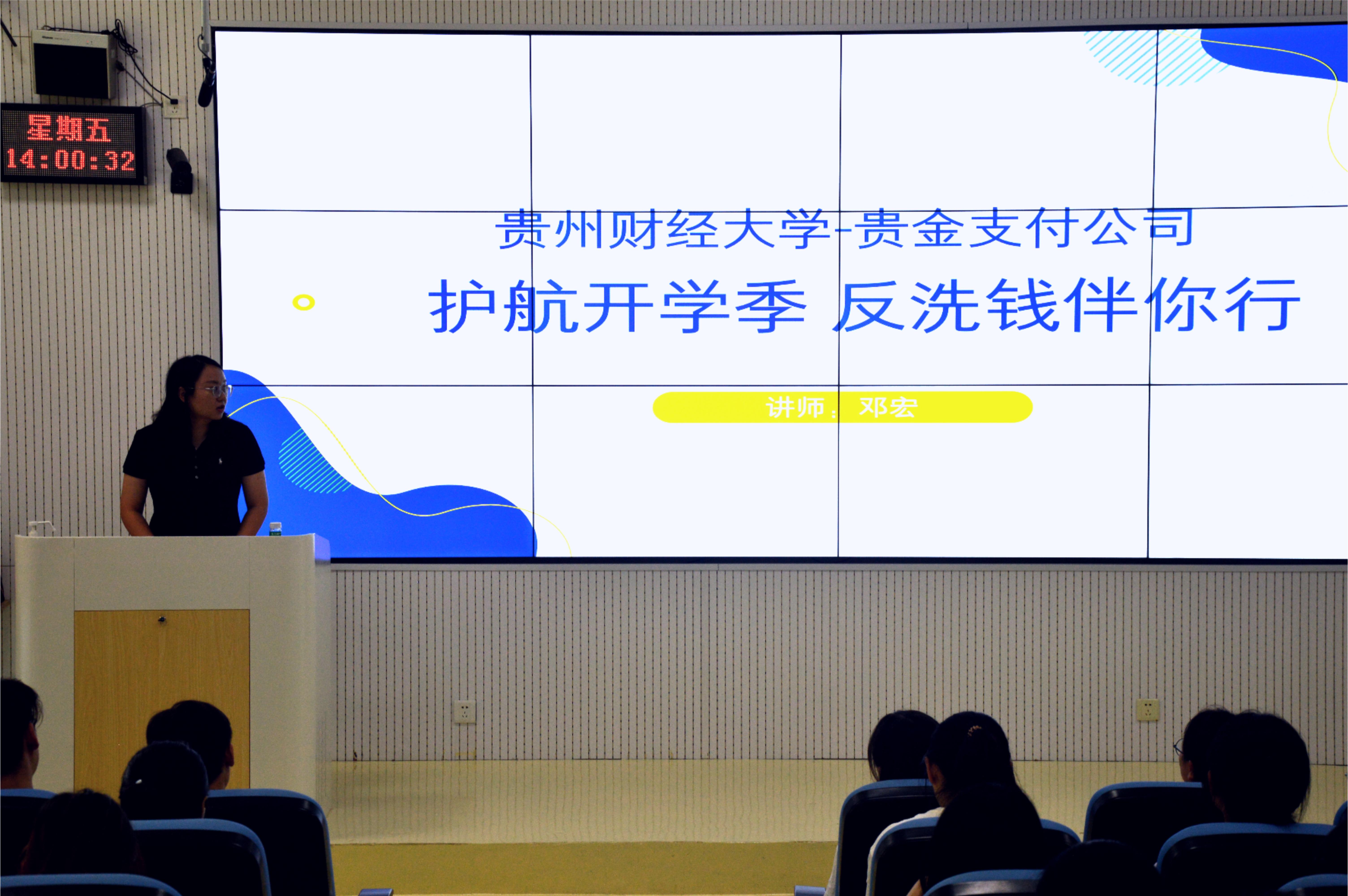 邀请贵州贵金支付网络服务有限公司风险合规部负责人、满帮集团金融事业部金融市场规划、腾讯集团财付通(微信支付)贵州分公司副总经理邓宏,在乐学楼202教室举办“护航开学季 反洗钱伴你行”讲座。