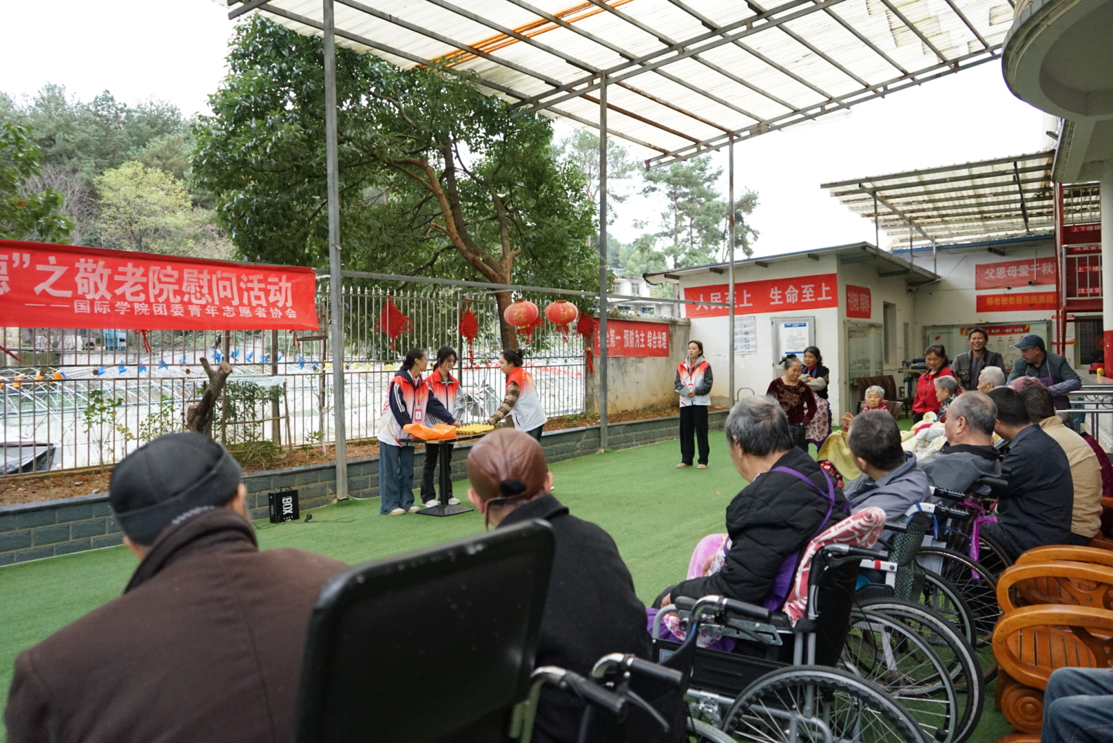 志愿者们对敬老院的公共区域进行了全面的清洁,包括扫地、擦窗户、整理花坛等,以实际行动表达对老人们的关怀与尊重。老人们看到志愿者们忙碌的身影,脸上露出了欣慰的笑容,对志愿者们表示了由衷的感谢。随后,慰问演出拉开帷幕。志愿者们为老人们倾情奉献了一场丰富多彩的视听盛宴:徐彤、杨鑫泉以一首充满活力的歌曲《明天你好》点燃现场气氛;罗雨偎、姚鸿羽通过轻盈欢快的舞蹈《苹果香》,带领老人们回味青春时光;李佳蓉、喻安蕊则以幽默诙谐的小品《天上不会掉馅饼》引得老人们笑声连连,掌声不断。此外,张佳玥、张馨合唱《我和我的祖国》,深情表达对祖国的热爱;李宗雯、张馨雨带来《如愿》,传递对美好生活的向往;张安余、刘芳演唱《今天是你的生日》,为老人们送上温馨的生日祝福。而诗朗诵《爱满这里》,则以真挚的话语表达了对老人们的深切关爱,让老人们感受到了浓浓的节日喜悦与温暖。