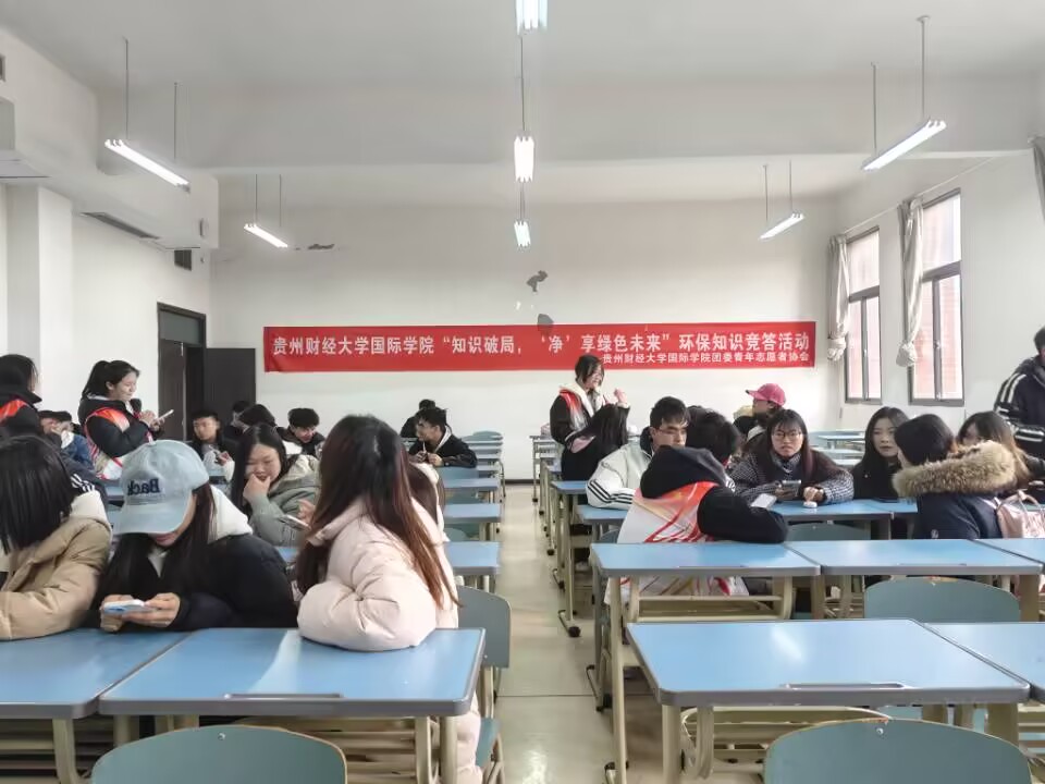 在博学楼2-17教室举办“知识破局,‘净’享绿色未来”环保知识竞答活动。