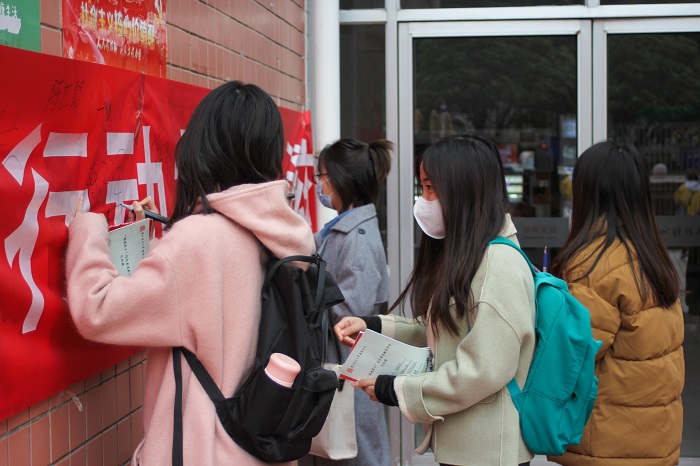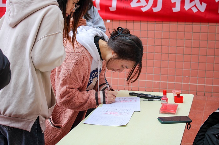 学生志愿者的组织下,活动井然有序地进行。学生志愿者从有关艾滋病的基本知识、如何预防艾滋病等方面向同学们进行讲解,包括艾滋病的传播方式、如何有效阻止艾滋病的传播等方面的内容。同学们郑重地在横幅上签下自己的名字。