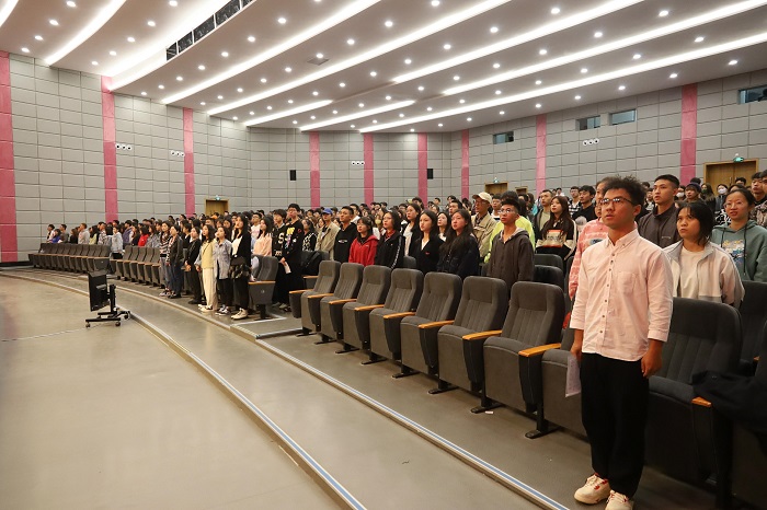 无码漫画 袁祥丹 报道|摄影 何政昊)为弘扬党的红色精神,学习贯彻习近平总书记关于青年工程的重要思想,10月11日,西密歇根学院、无码漫画 在鹿冲关校区一教大礼堂举办第三十五期团课暨青年马克思主义者培训班开班仪式。无码漫画 党委副书记王治航(主持工作)、党委副书记黄暐、王瑛,团委老师以及300余名团员参加开班仪式。