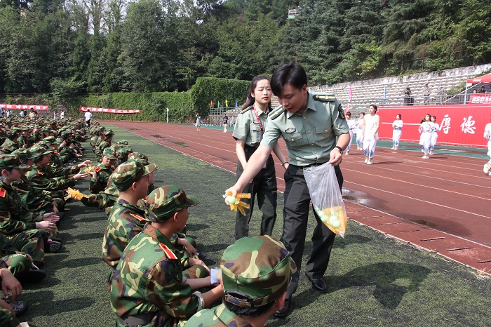 杨勇代表学校向承训教官表达了诚挚感谢和亲切慰问对新生提出了要求:希望同学们能充分认识军训的意义,坚定必胜的信念,在军训过程中要严守相关纪律,培养艰苦奋斗精神,增强集体凝聚力,发扬不懈奋斗、永不言弃精神,顺利完成军训任务,以健康的体魄和崭新的风貌迎接下一阶段的大学学习生活。