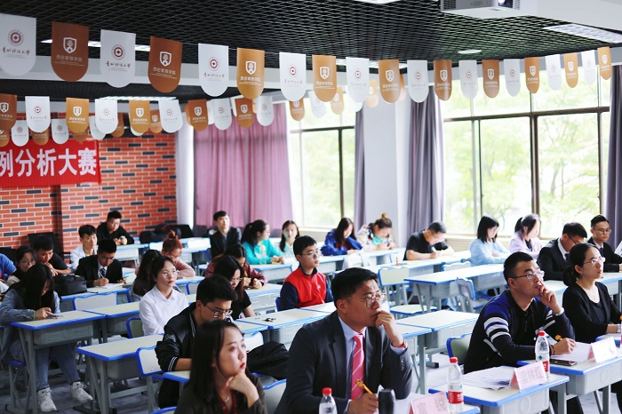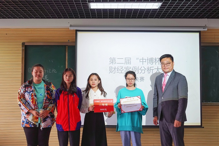 在鹿冲关校区第一教学楼举行第二届“中博杯”财经案例分析大赛决赛。学院副院长梁林红、学院团委副书记王璐、团委老师吴靓、中博教育副总裁富锐、中博教育贵州总经理牟富洲莅临指导。百余名学生观看了比赛。