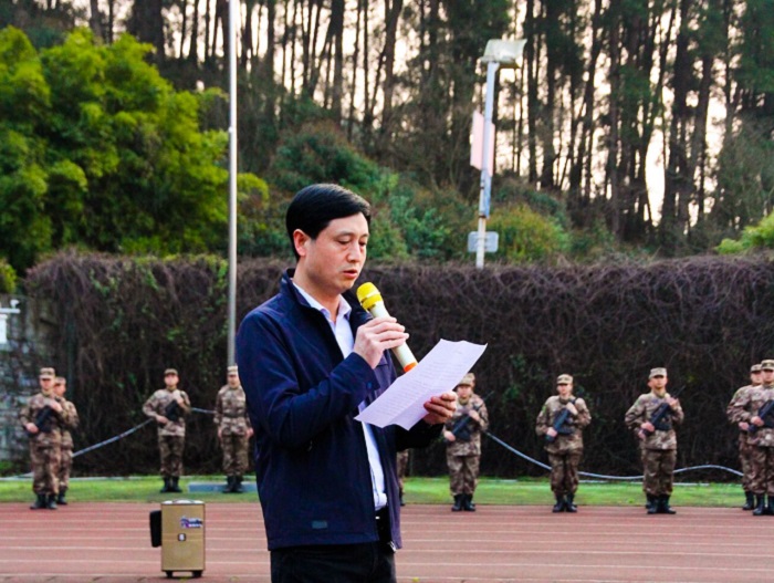 在鹿冲关校区举行本学期第一次升旗仪式。学院领导班子、全体教职工以及学生代表参加仪式。